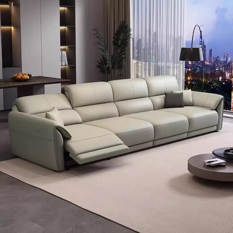 イタリアンミニマリズムの多機能電動レザーソファ - モダンな小型リビングにぴったり!スマートなファーストクラスの快適さをお届けします。