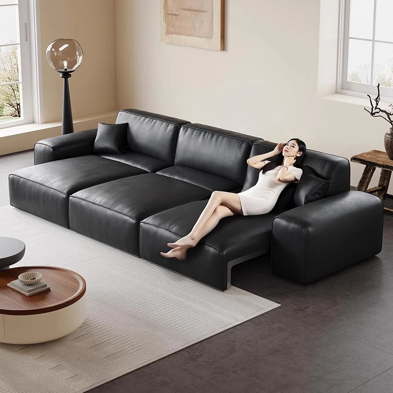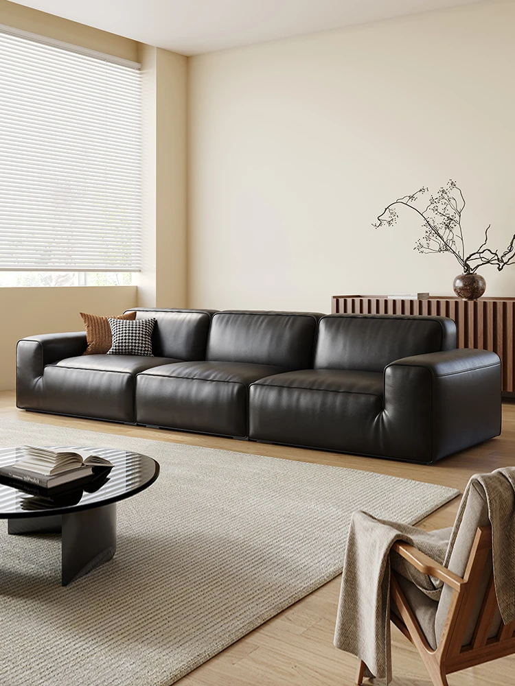 2025 New Arrival: Xiatou Genuine Leather Sofa - Italian Minimalist Design, Stylish Black Top-Grain Cowhide for Your Living Room - Modern Block Style with Comfortable Seating