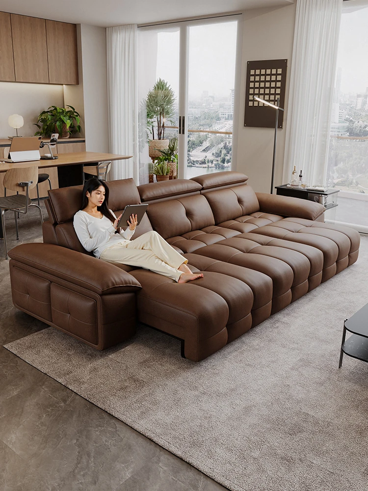 Italian Minimalist Electric Sofa - Cloud Soft Package, Zero Wall, Multi-functional Design, Simple Style for Living Room, Made with Top-grain Leather