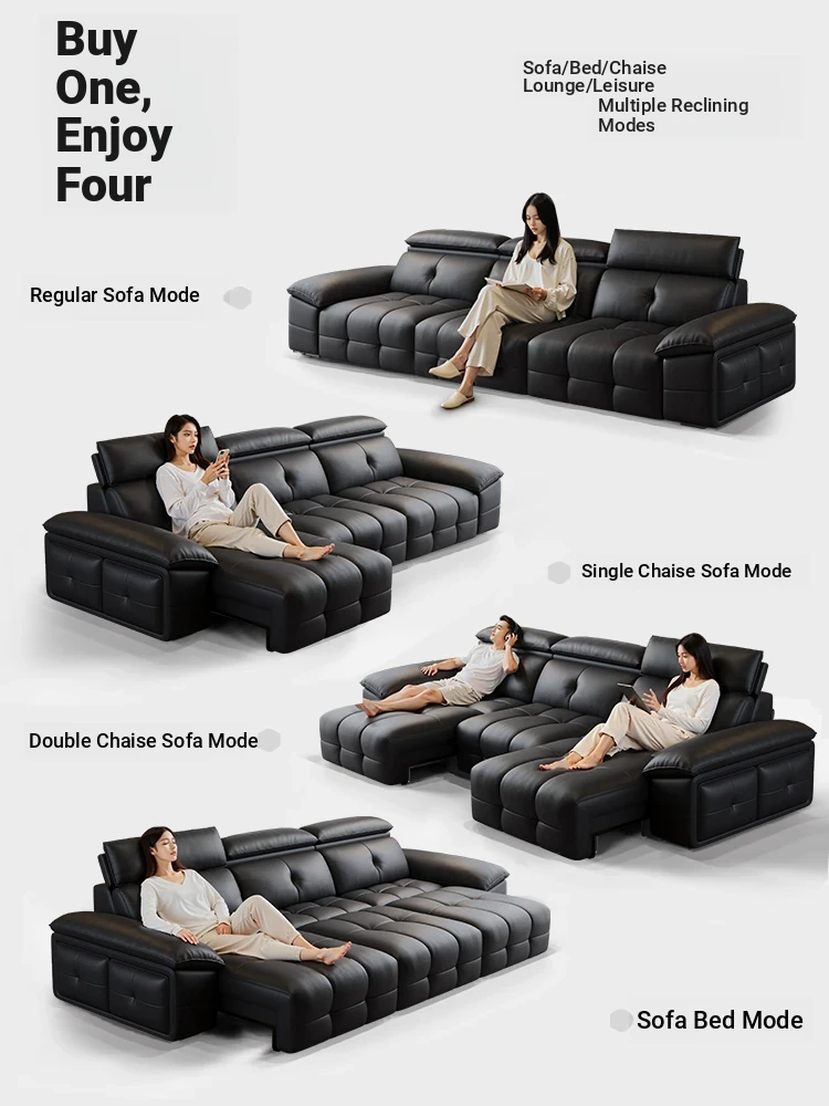 Multifunctional Adjustable Genuine Leather Sofa - Smart Electric Couch for Small Living Rooms, Zero Wall Space Capsule Design