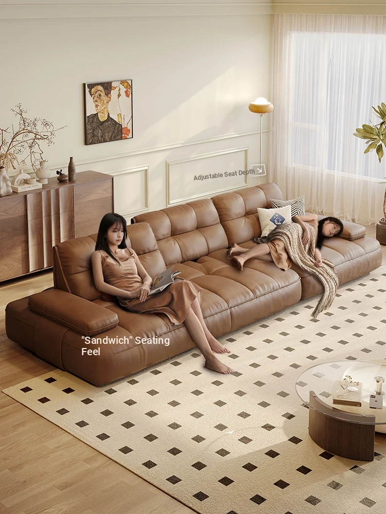 Vintage Genuine Leather Lawrence Sofa - Adjustable Depth, High-End Bohemian Design, Perfect for Small Spaces, Modern Lazy Style