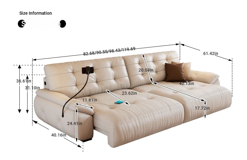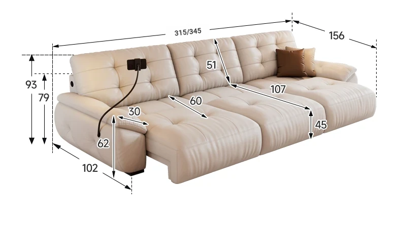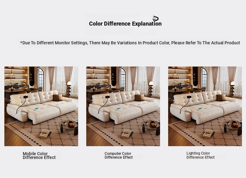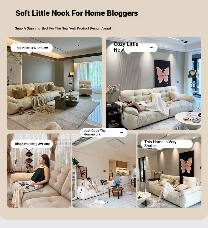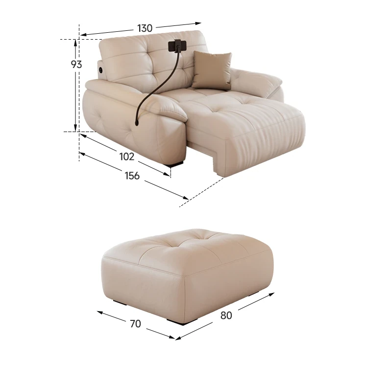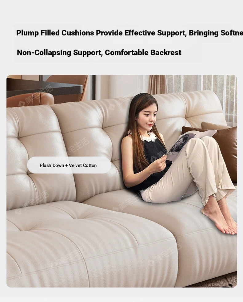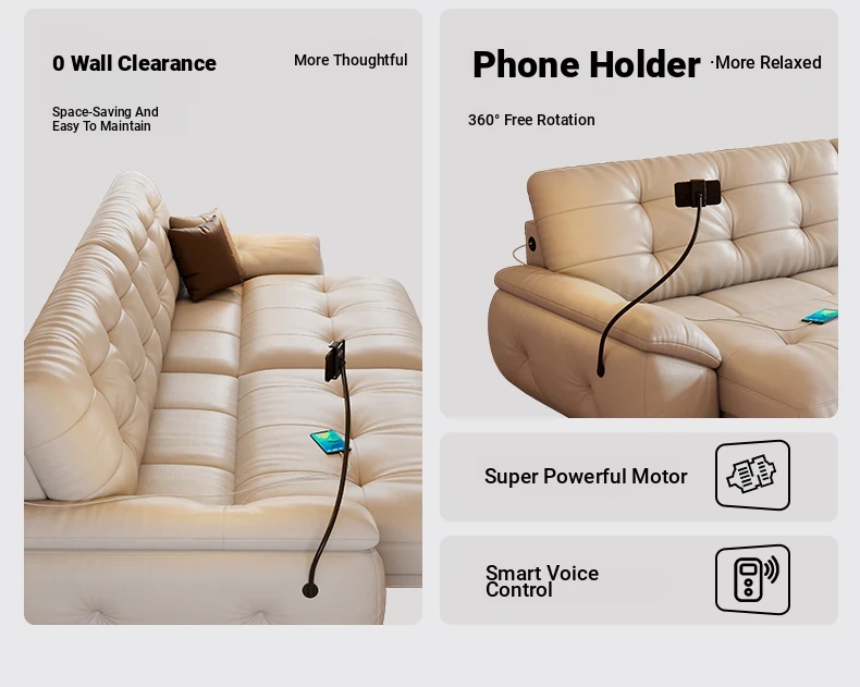 Creamy Space Cloud Electric Functional Genuine Leather Sofa Bed - Versatile and Expandable Sailboat Sofa for Living Room, No Wall Required