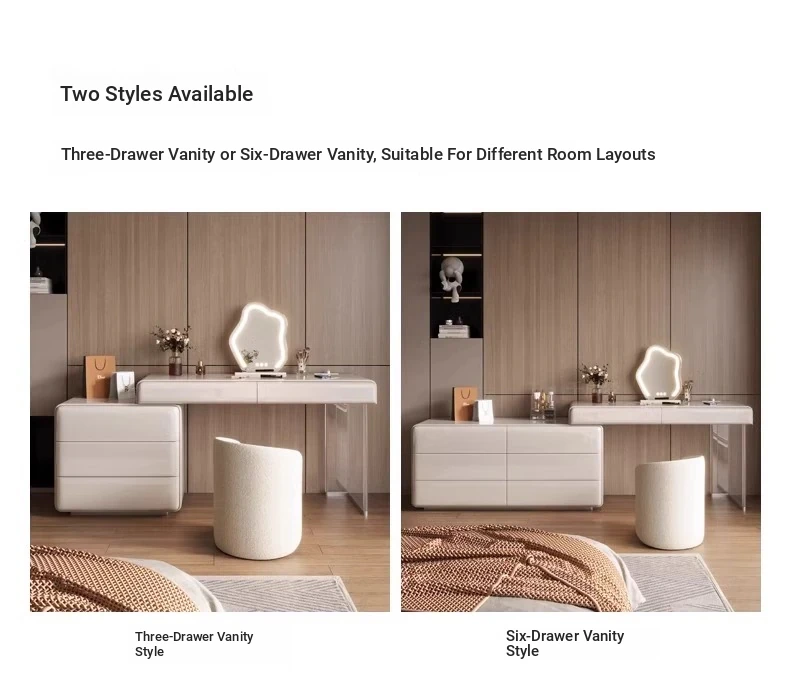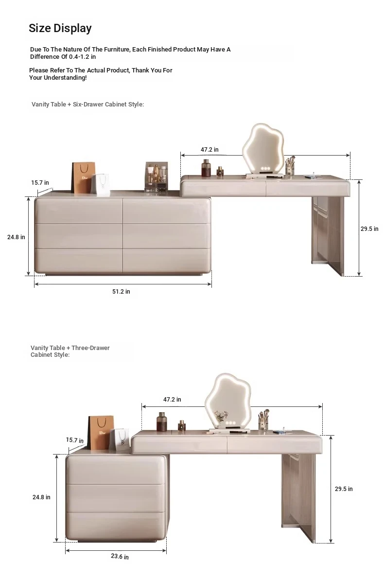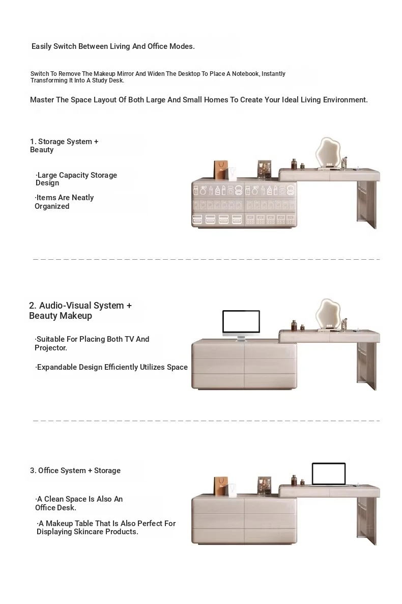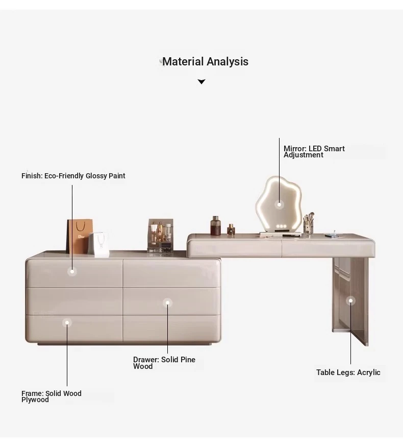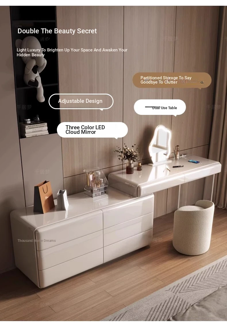 Creamy Style Vanity Dresser with Integrated Solid Wood & Acrylic Design - Minimalist Bedroom Corner Cabinet with Expandable Makeup Table for Stylish Storage Solutions
