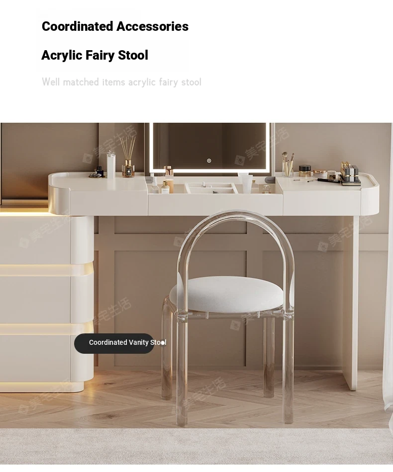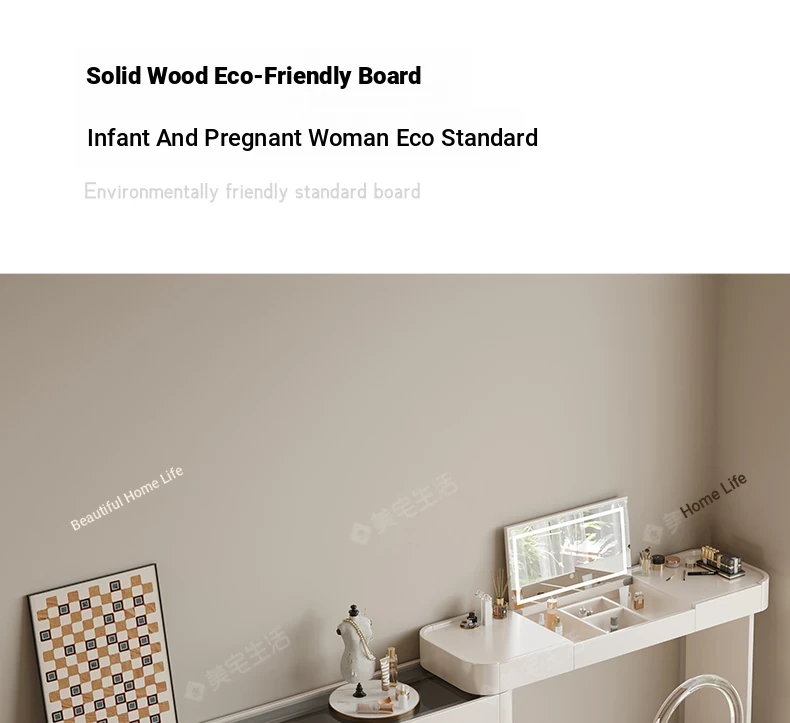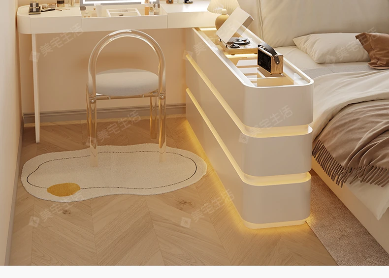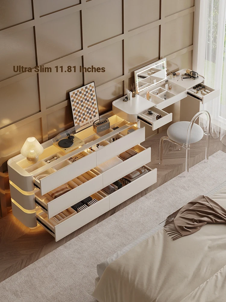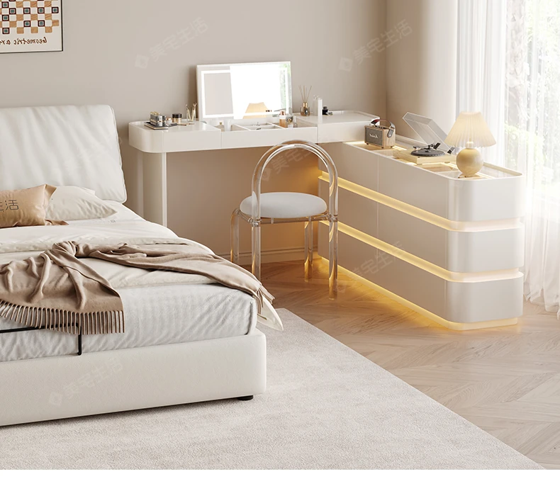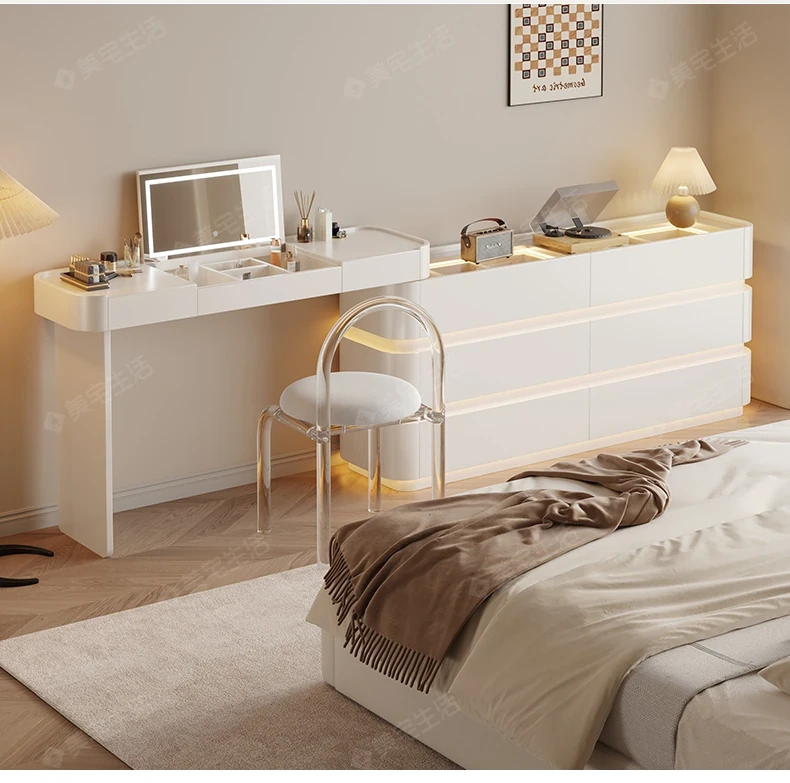 Creamy White Solid Wood Vanity Dresser | Modern Minimalist Bedroom Design with Integrated Chest of Drawers for Compact Spaces | New 2025 Model