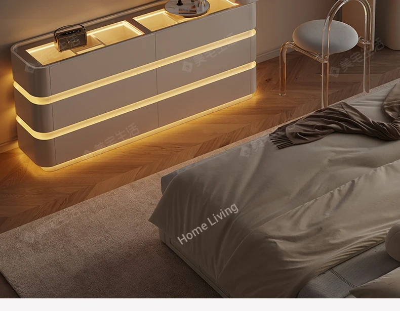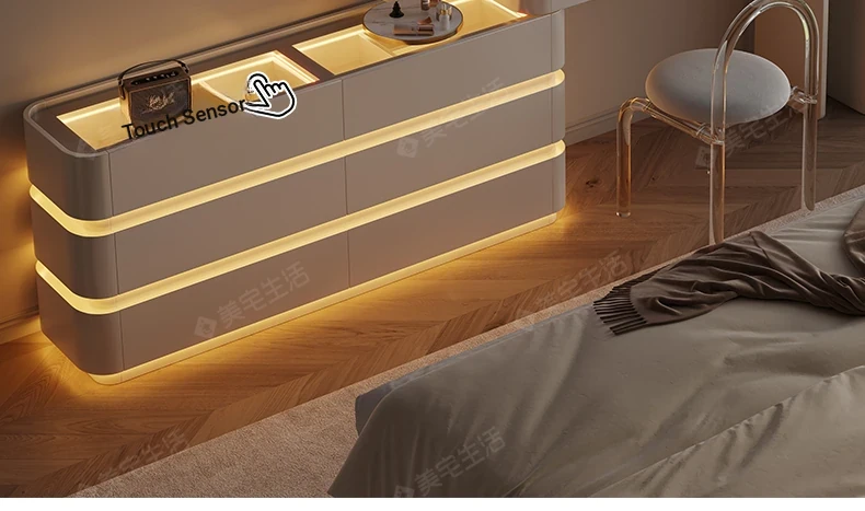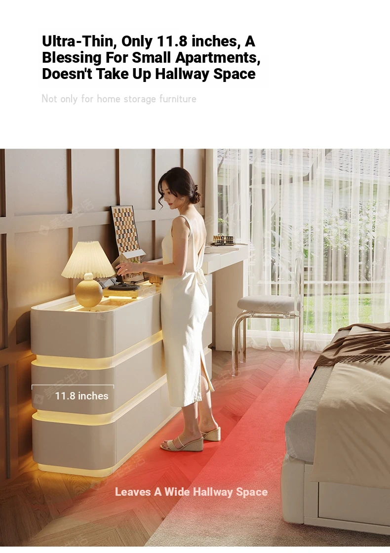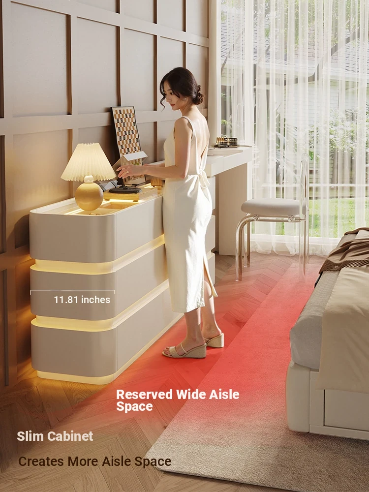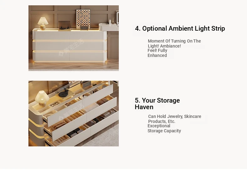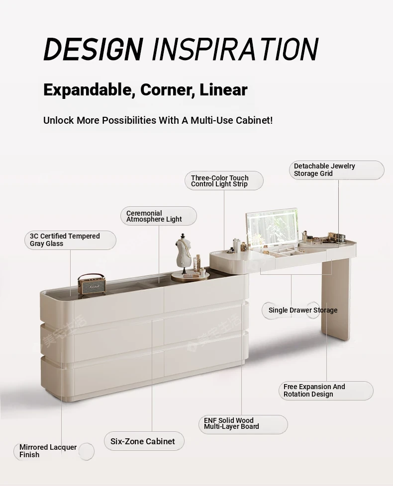 Creamy White Solid Wood Vanity Dresser | Modern Minimalist Bedroom Design with Integrated Chest of Drawers for Compact Spaces | New 2025 Model
