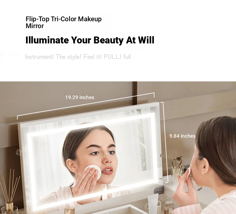 39.37 in six-drawer cabinet +47.24 in flip makeup table [cream white + tempered gray glass]]