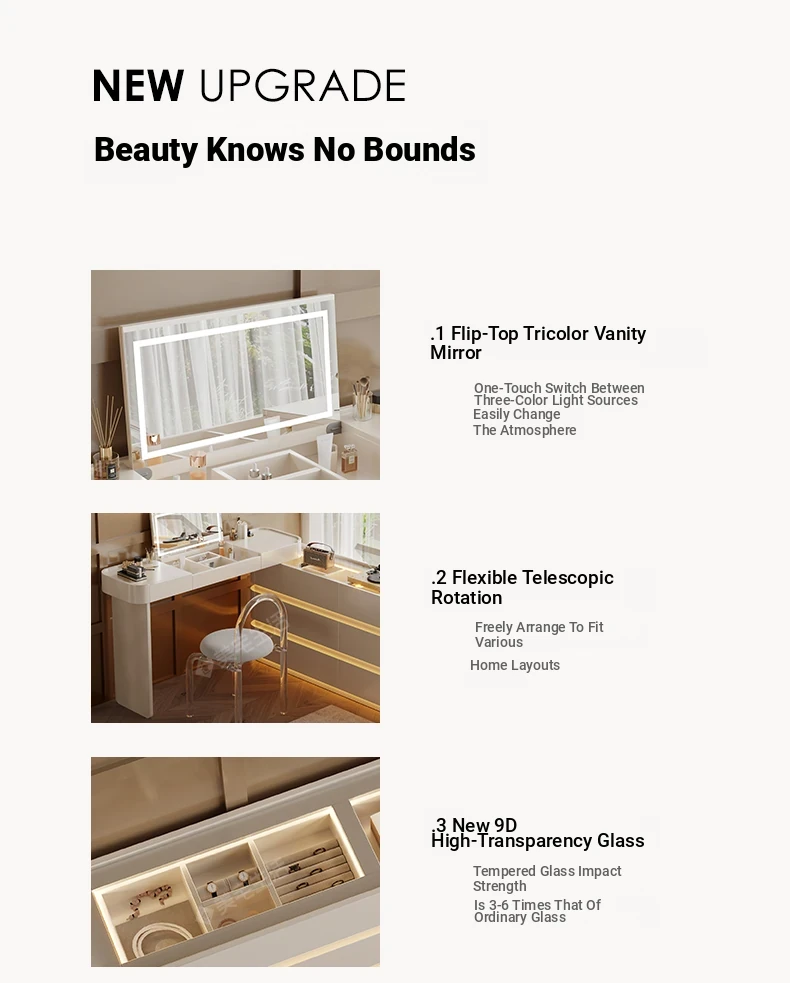 59.06 in six-drawer cabinet +47.24 in flip makeup table [cream white + tempered gray glass]]