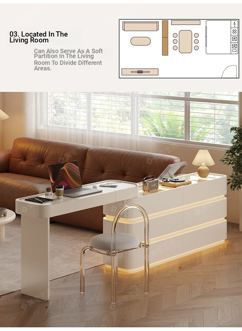 47.24 in six-drawer cabinet +47.24 in flip makeup table [cream white + tempered gray glass]]