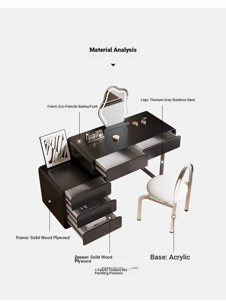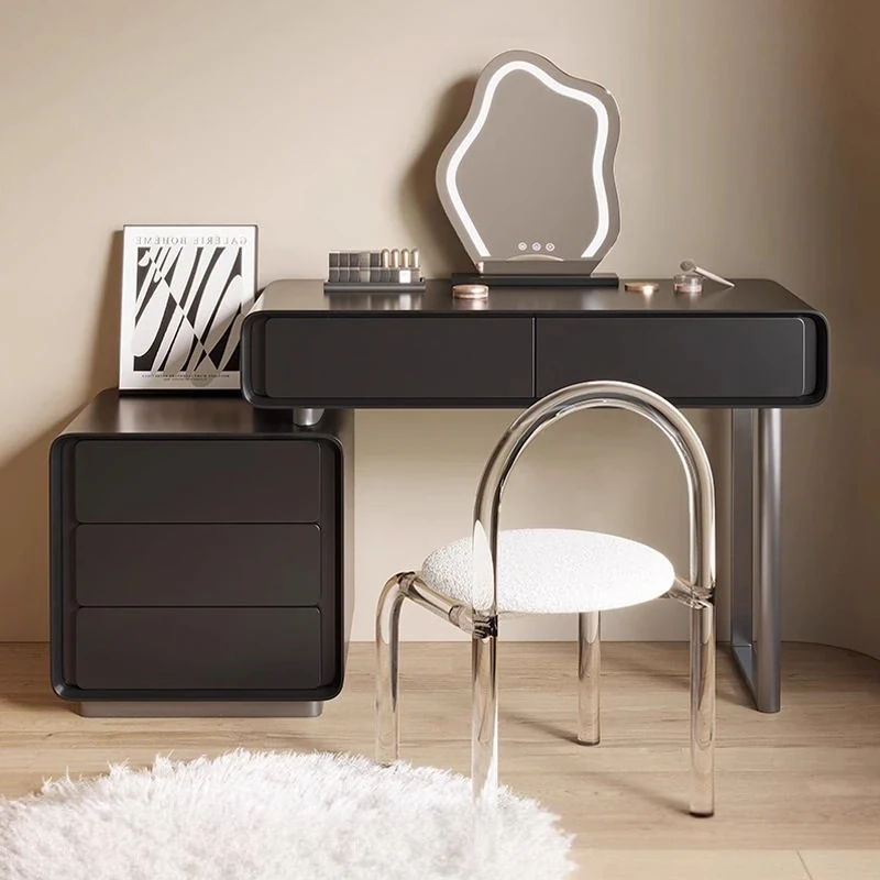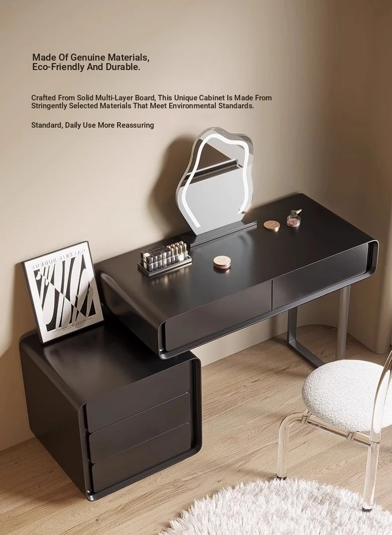 Elegant Black Solid Wood Vanity Dresser Set - Modern Minimalist Makeup Table for Small Spaces, Perfect for Bedroom or Bedside Use