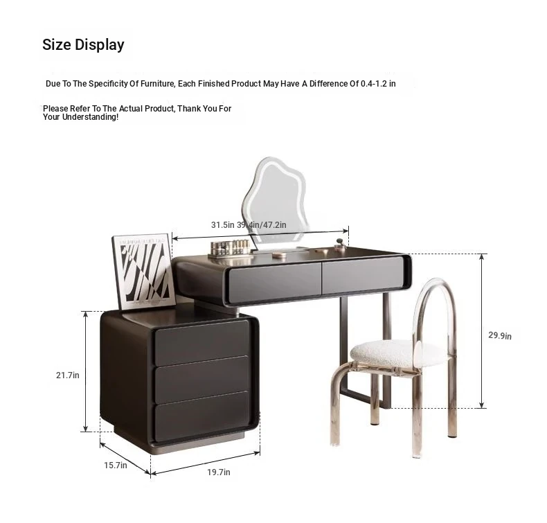 31.50 in dressing table +39.37 in six-drawer cabinet + makeup mirror + makeup stool