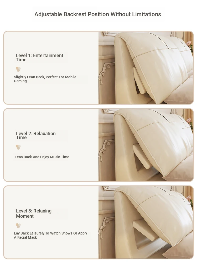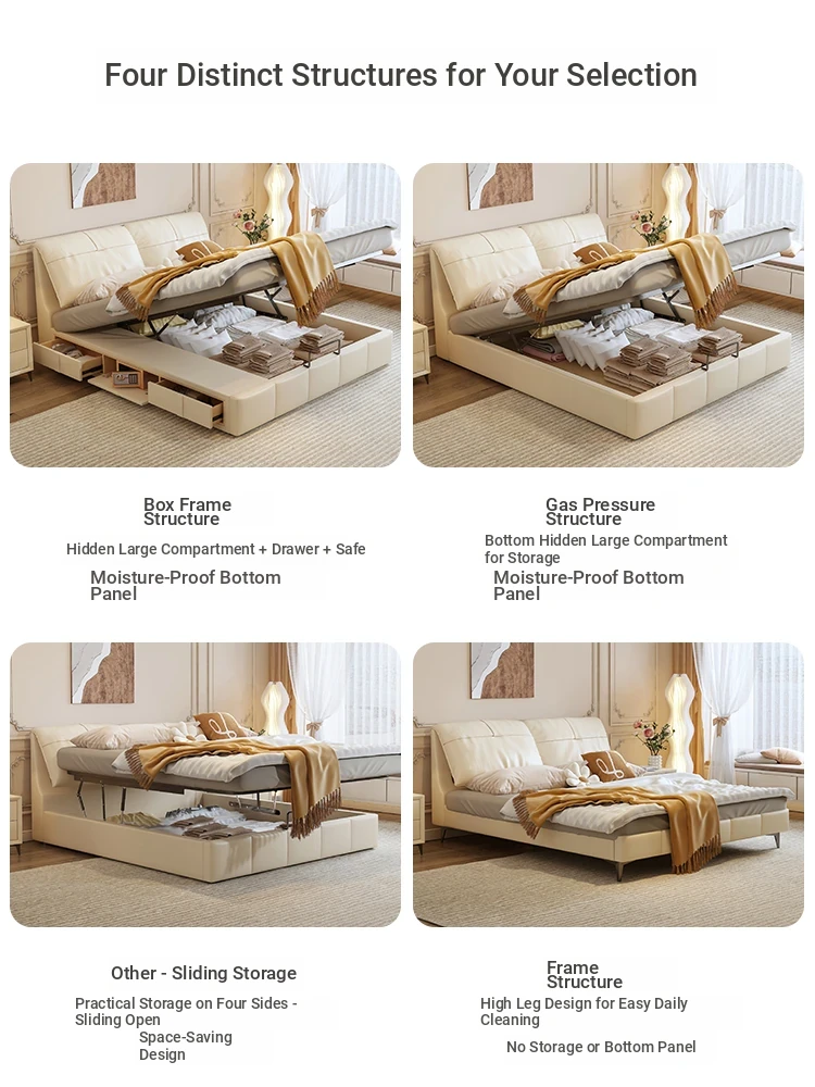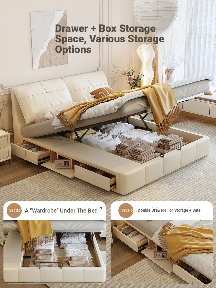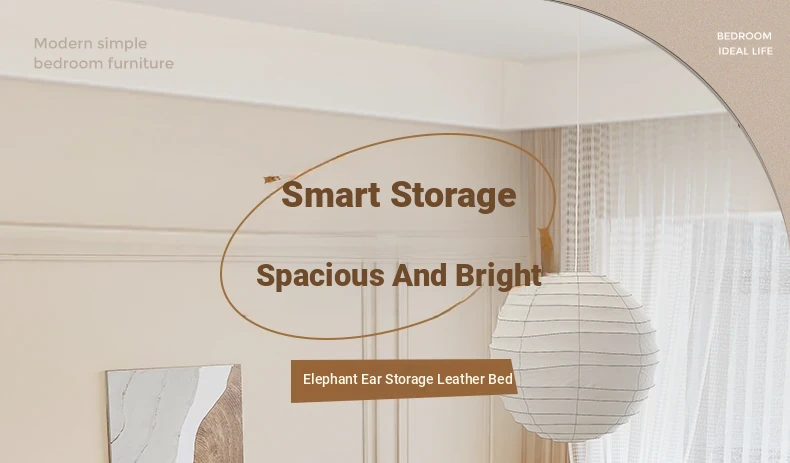 Elephant Ear Design Modern Minimalist Italian Genuine Leather Double Bed with Storage - Spacious 2m x 2m for a Stylish Master Bedroom.