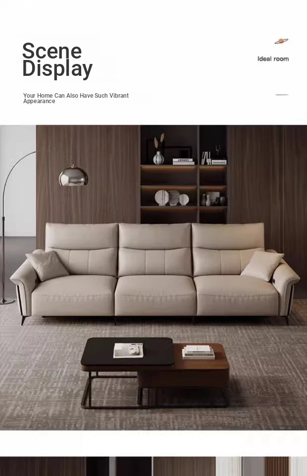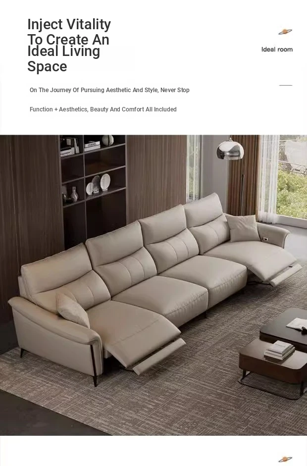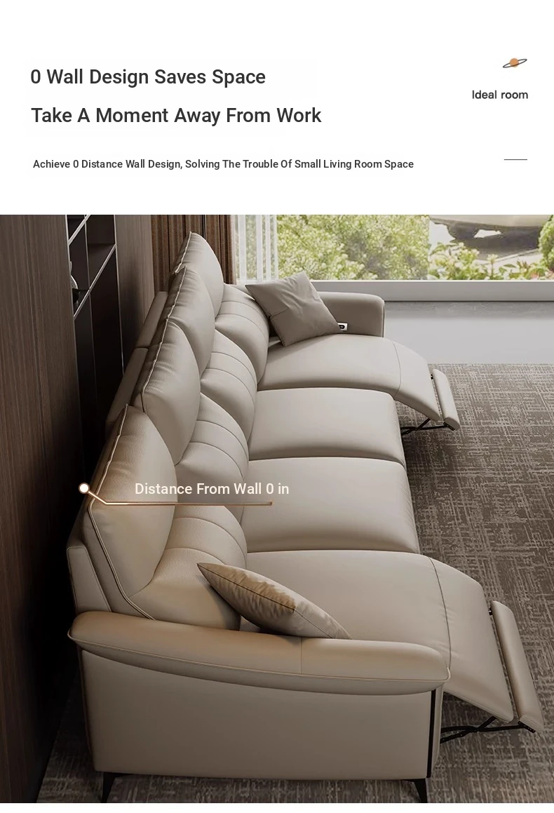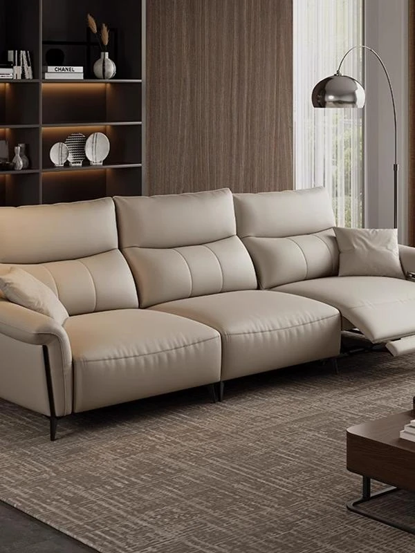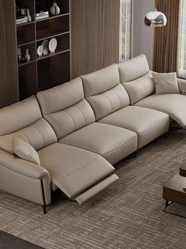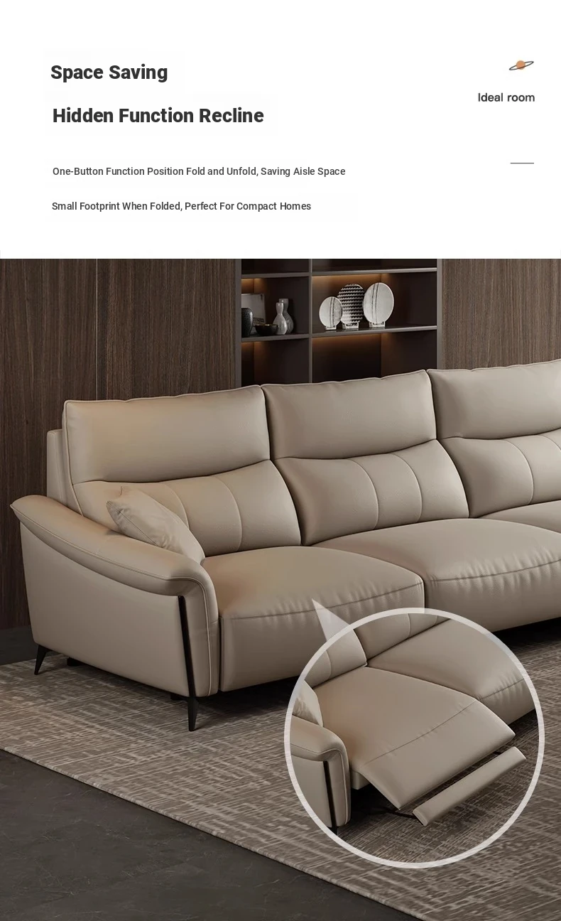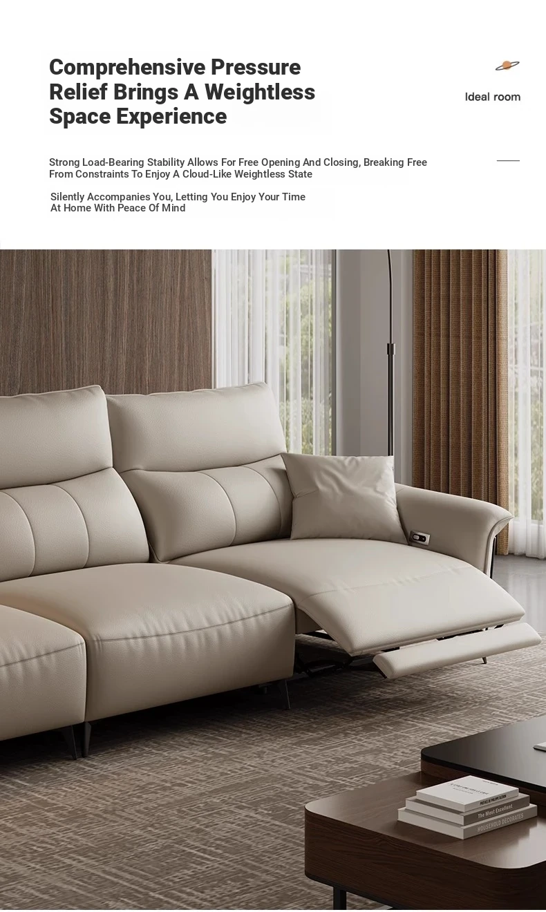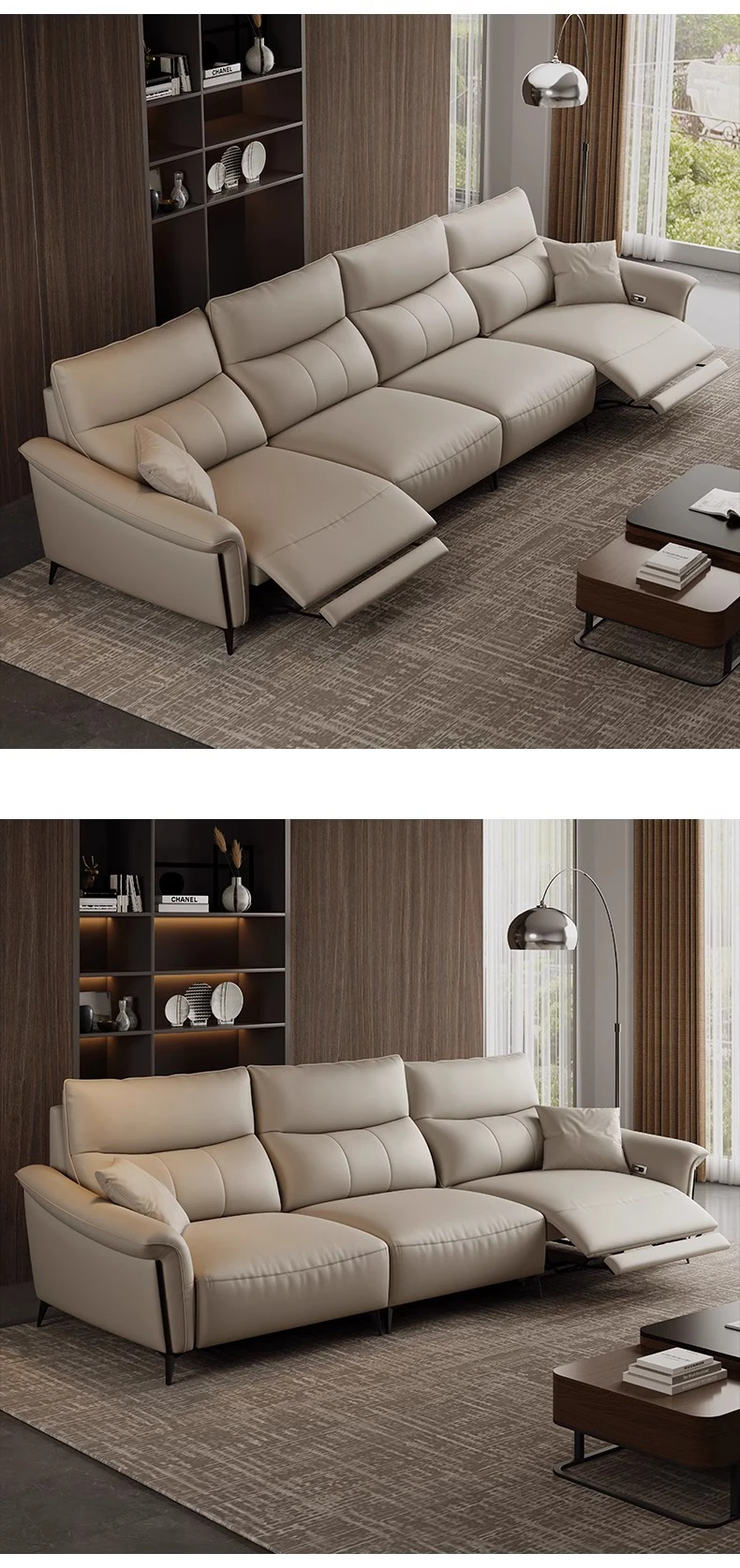 Italian Minimalist Multifunctional Genuine Leather Electric Sofa - First-Class Space Capsule Design, Made of Top-Grain Cowhide for a Stylish Living Room Experience.