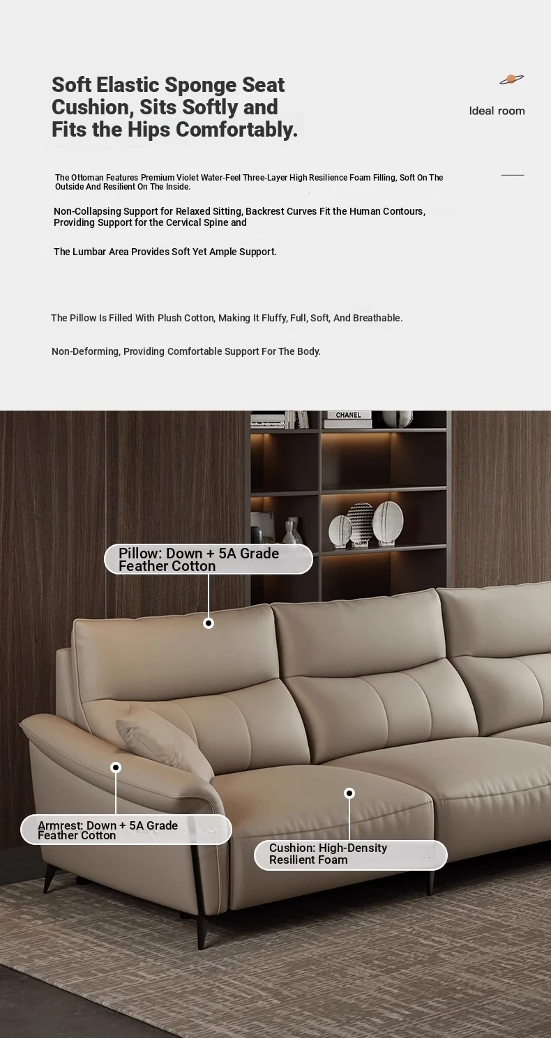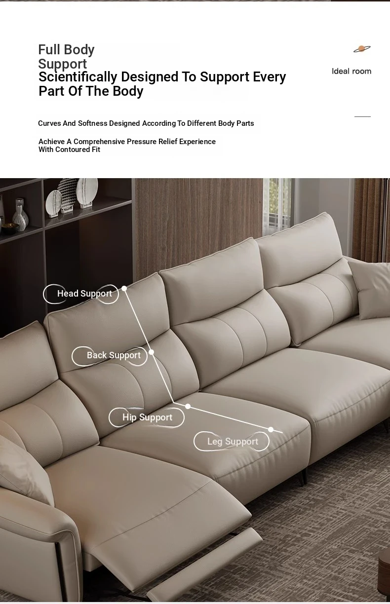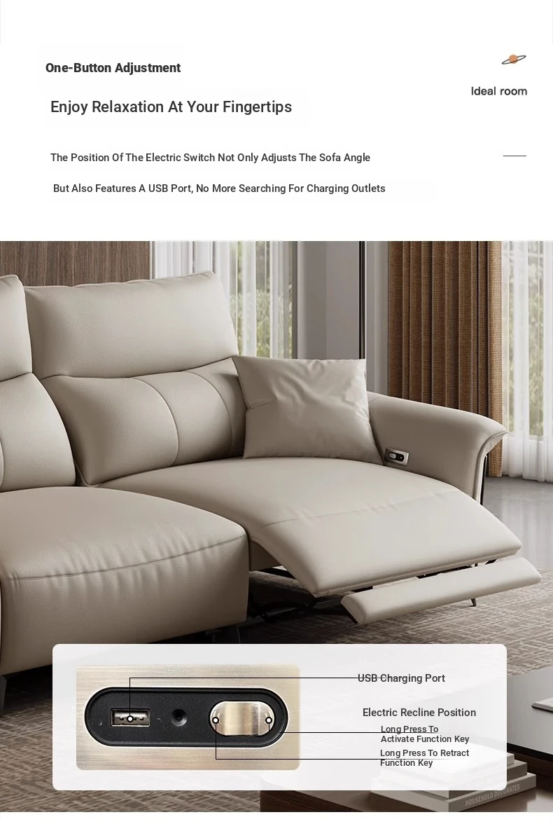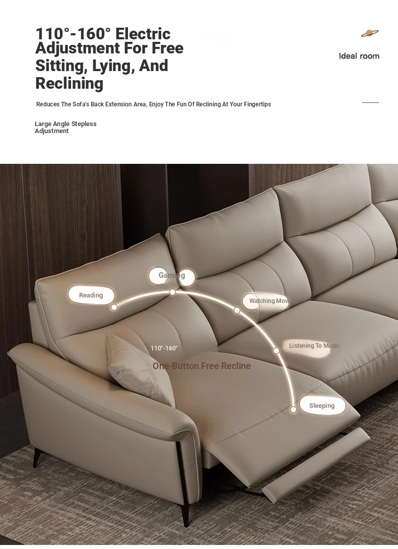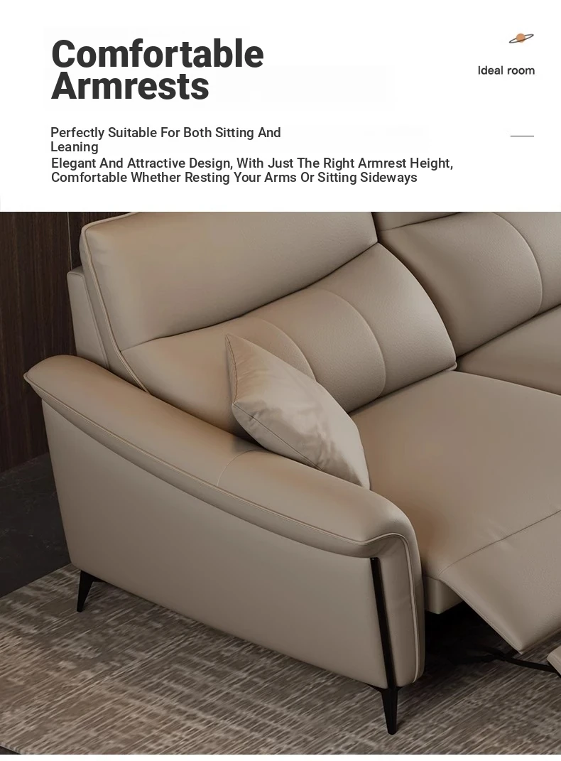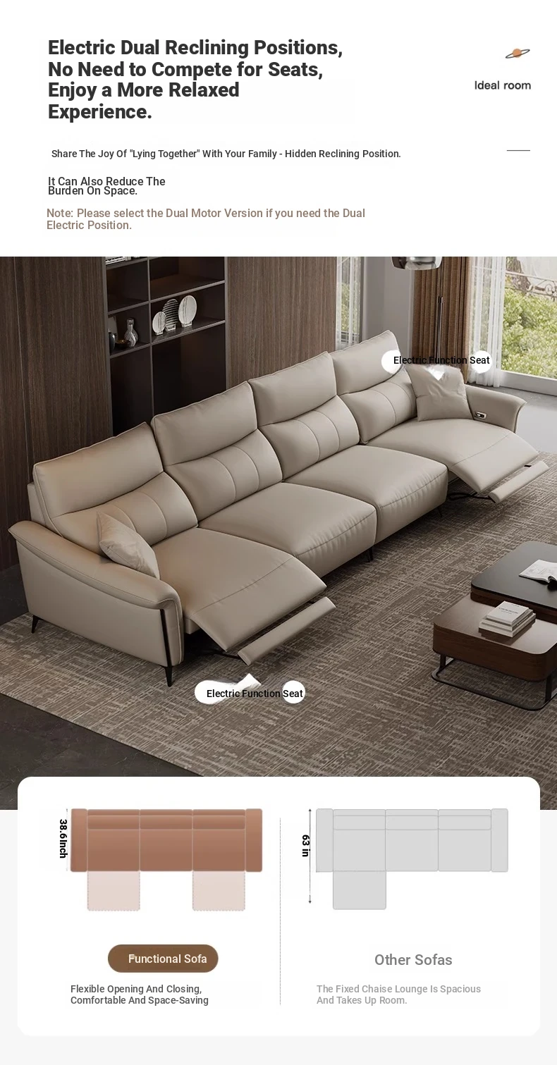Italian Minimalist Multifunctional Genuine Leather Electric Sofa - First-Class Space Capsule Design, Made of Top-Grain Cowhide for a Stylish Living Room Experience.