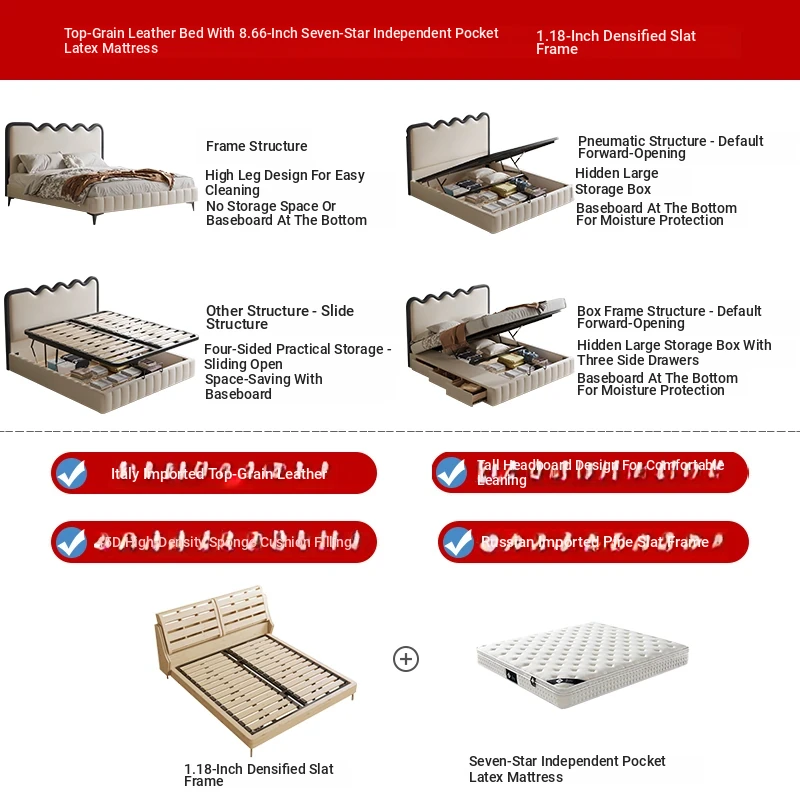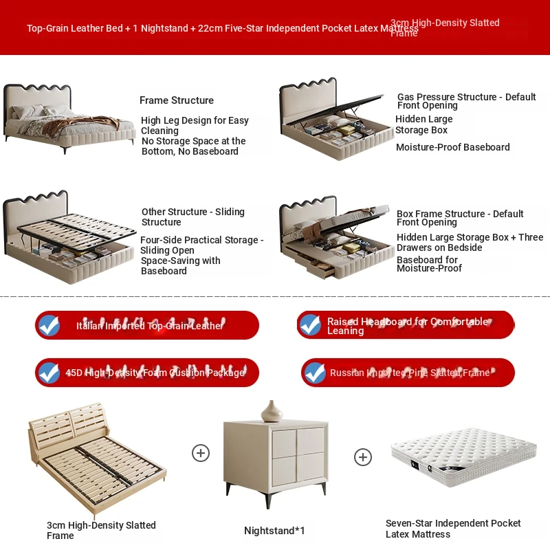 First layer cowhide bed +1 cabinet +8.66in seven-star Independent bag latex mattress
