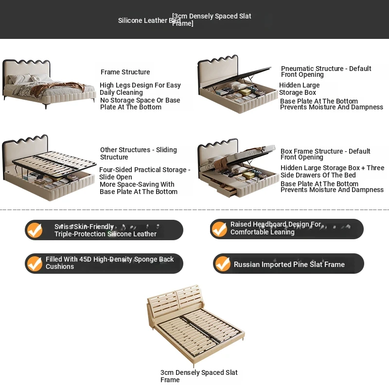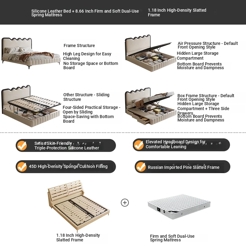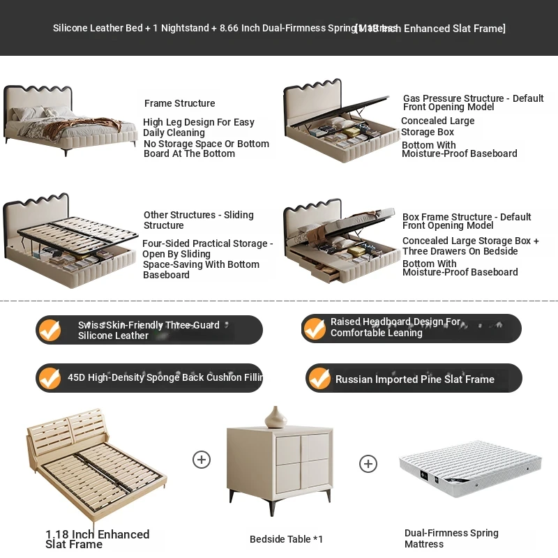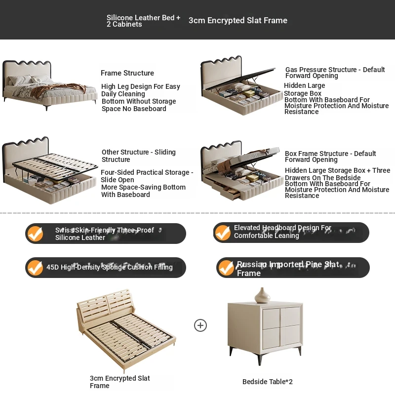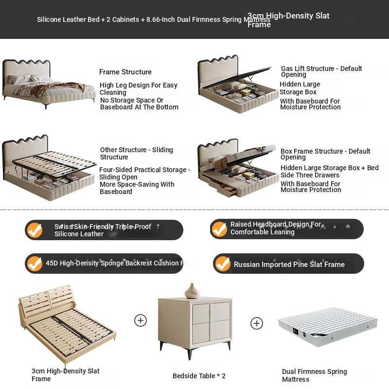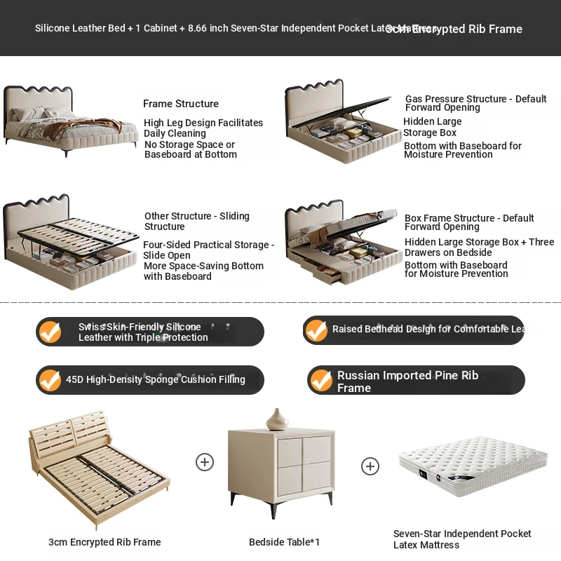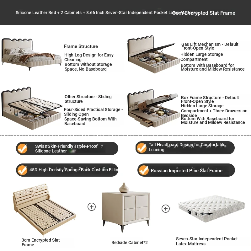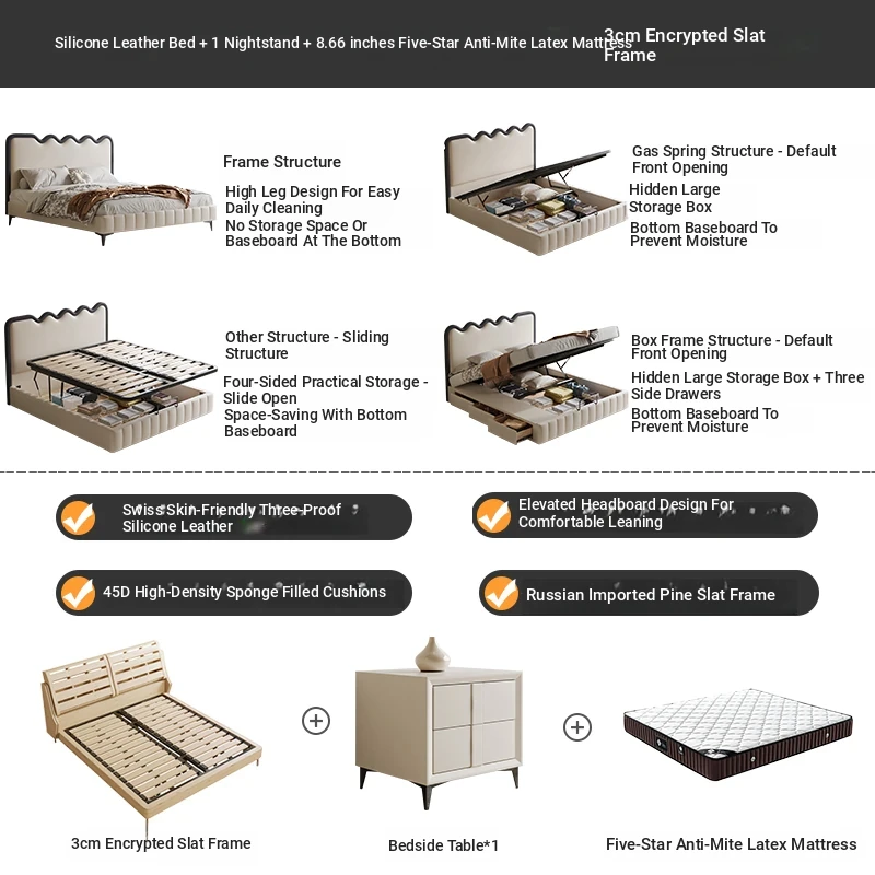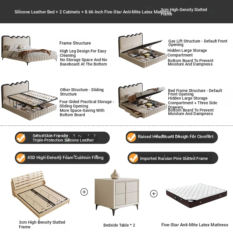 Silicone leather bed +2 cabinets +8.66in five-star mite removal Latex Mattress [1.18in encrypted row skeleton]]
