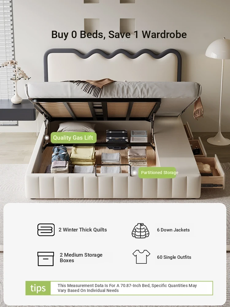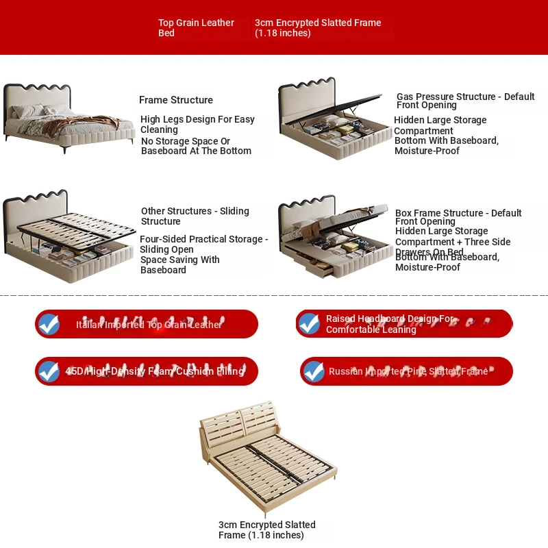 Luxurious French-Style Leather Storage Bed - Elegant Cream Design with Side Opening, Perfect for Master Bedrooms and Small Spaces (1.8m)