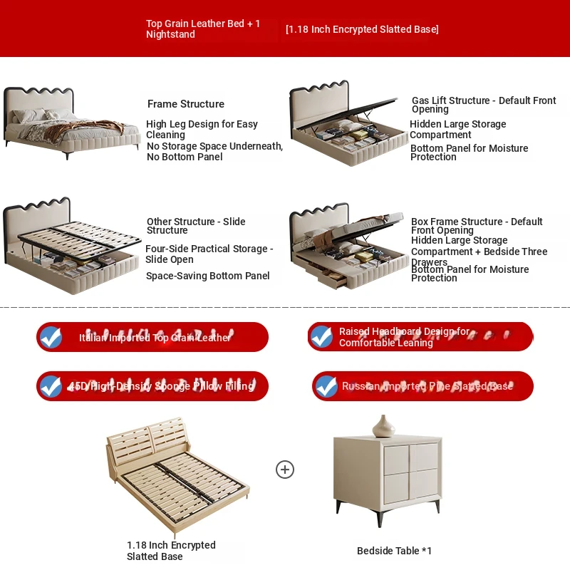 Head layer cowhide bed +2 cabinet [1.18in encrypted row skeleton]]