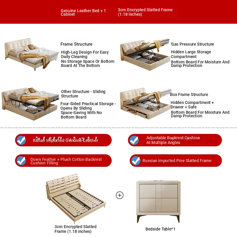 First layer cowhide bed +1 cabinet +8.66in soft and hard spring mattress