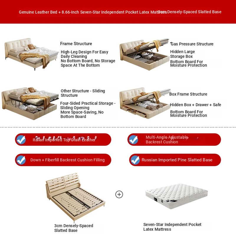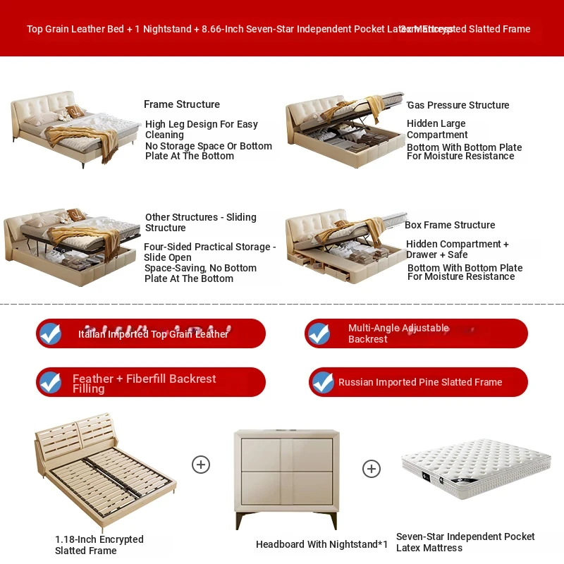 First layer cowhide bed +1 cabinet +8.66in seven-star Independent bag latex mattress