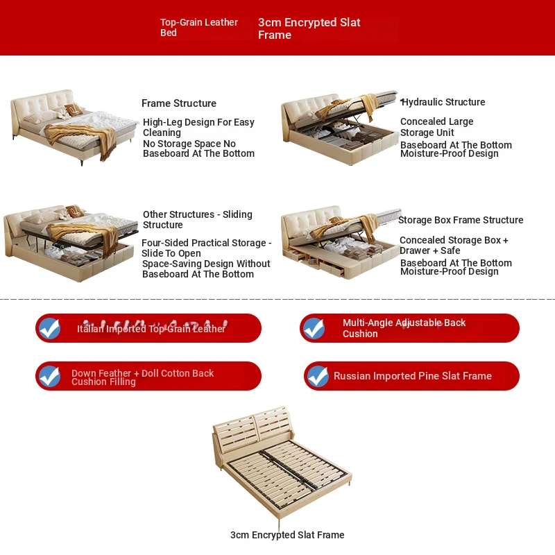 Head layer cowhide bed +2 cabinet [1.18in encrypted row skeleton]]