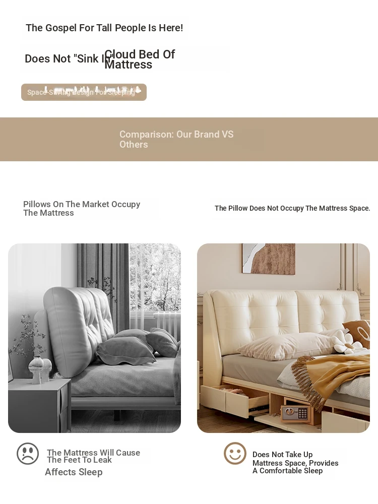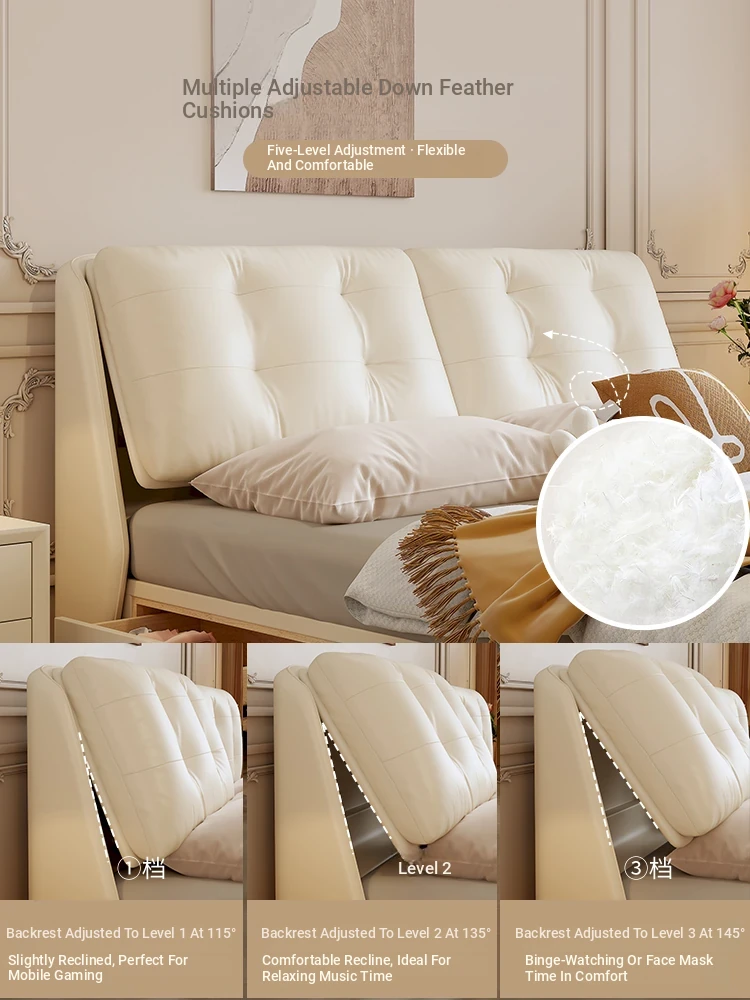 Modern Luxury Leather Bed with Storage - Cloud-Inspired Design for Master Bedrooms, Perfect as a Chic Wedding Boutique Bed
