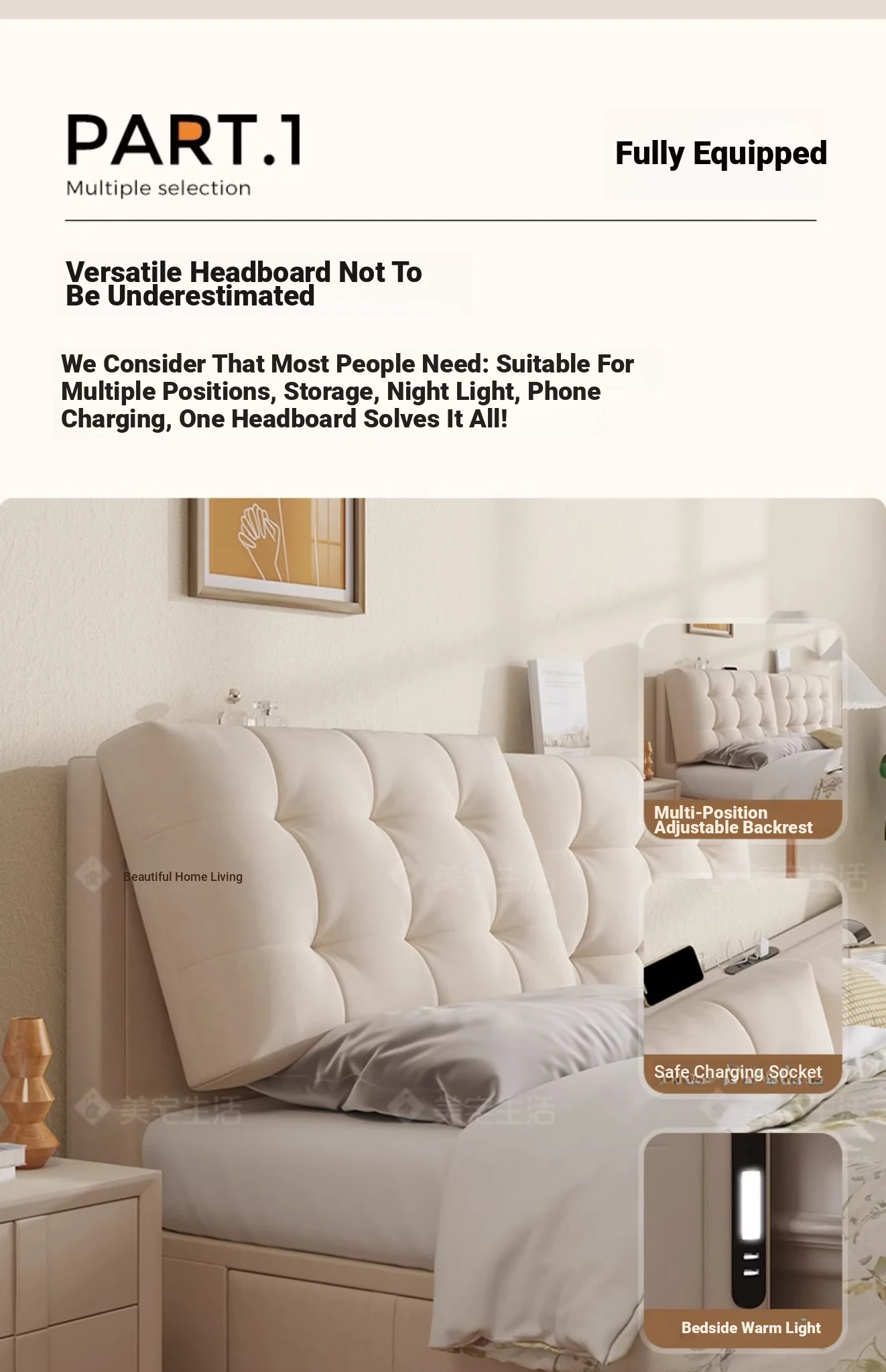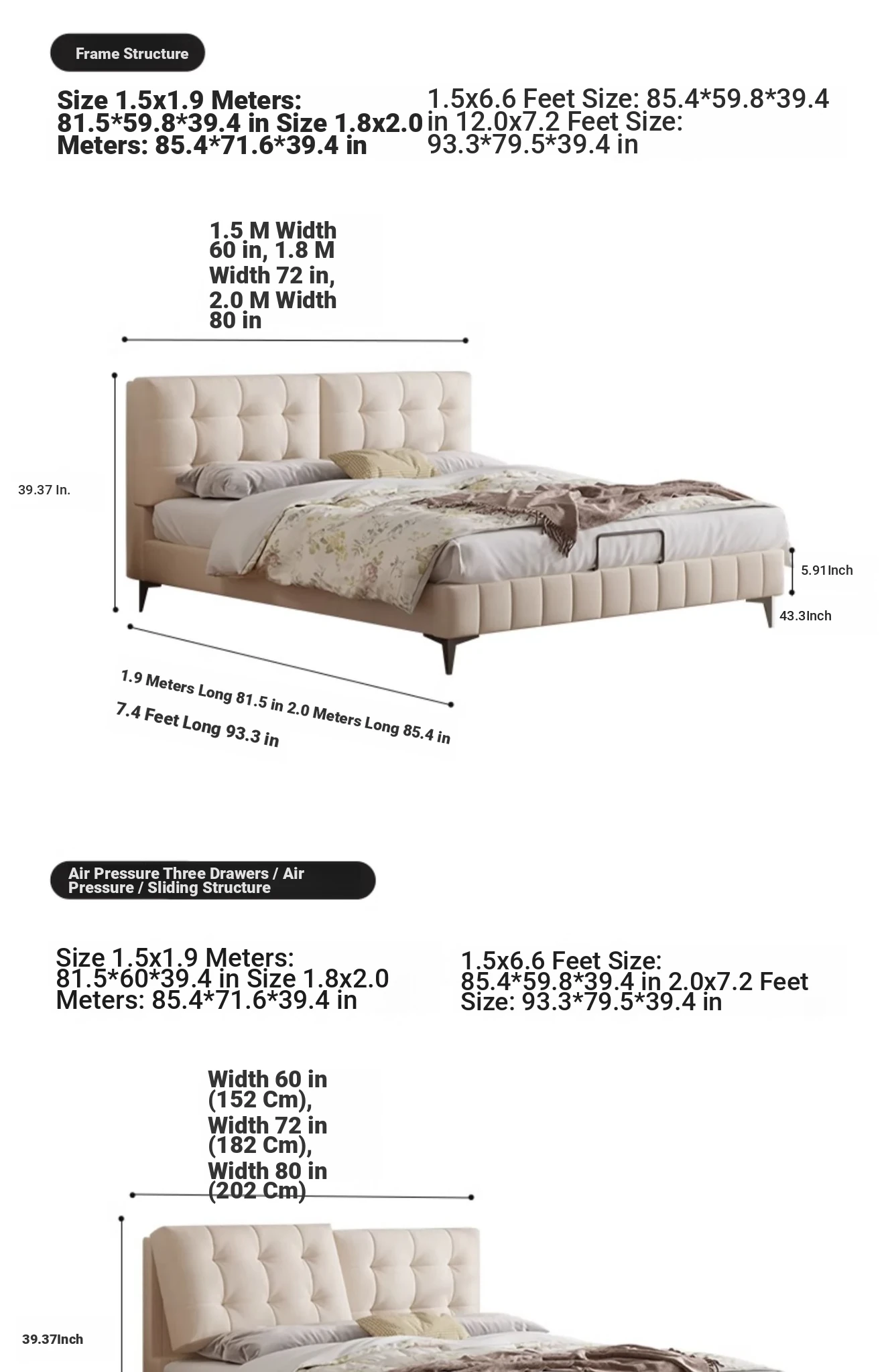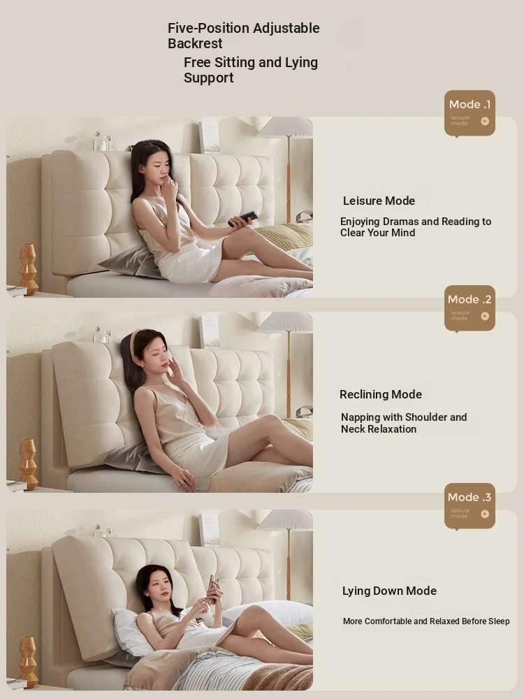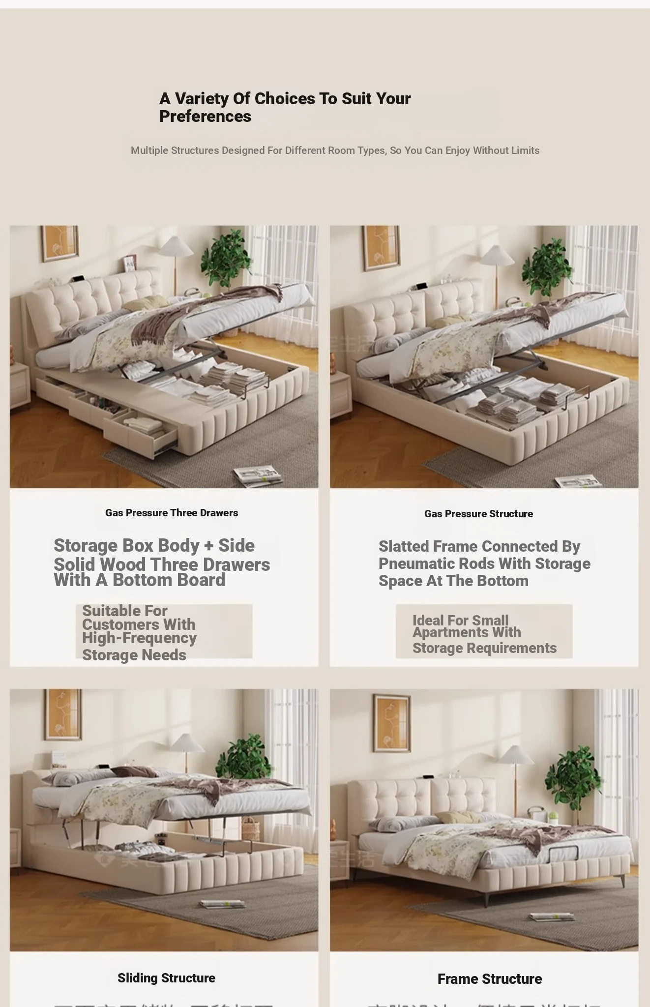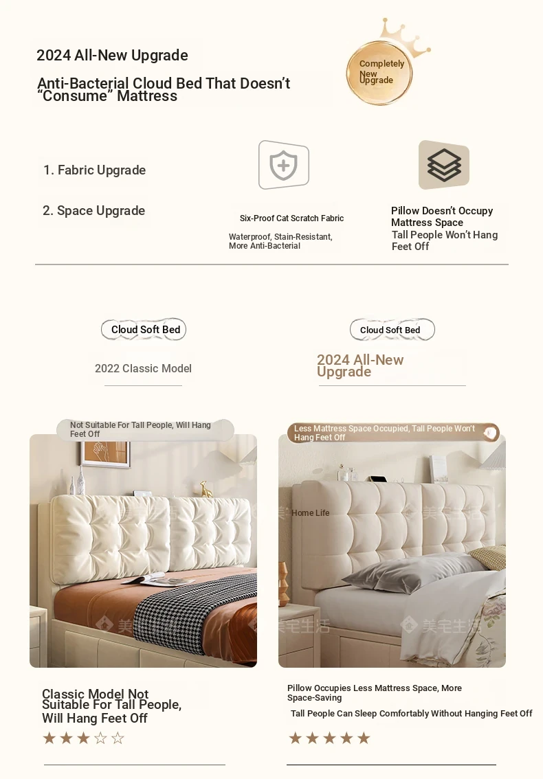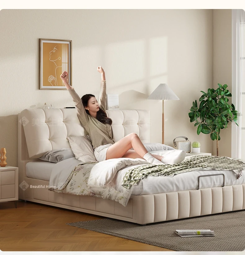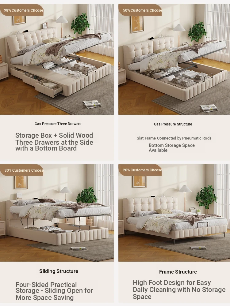 Modern Minimalist Cream Cloud Bed with Cat Scratch Fabric and Storage Drawers – Perfect for Couples in Master Bedrooms – Stylish New Wedding Bed for Your Dream Home!