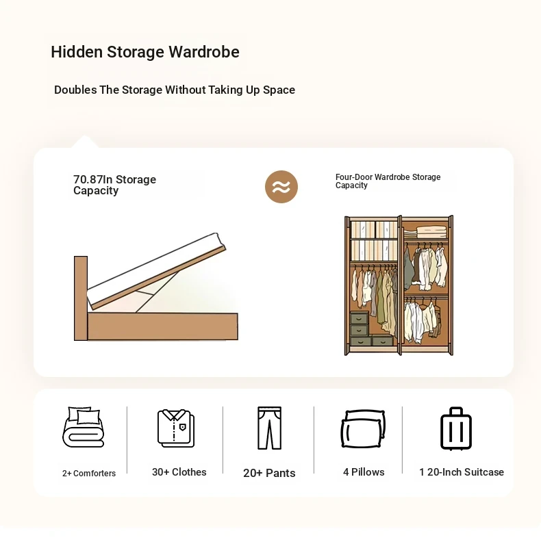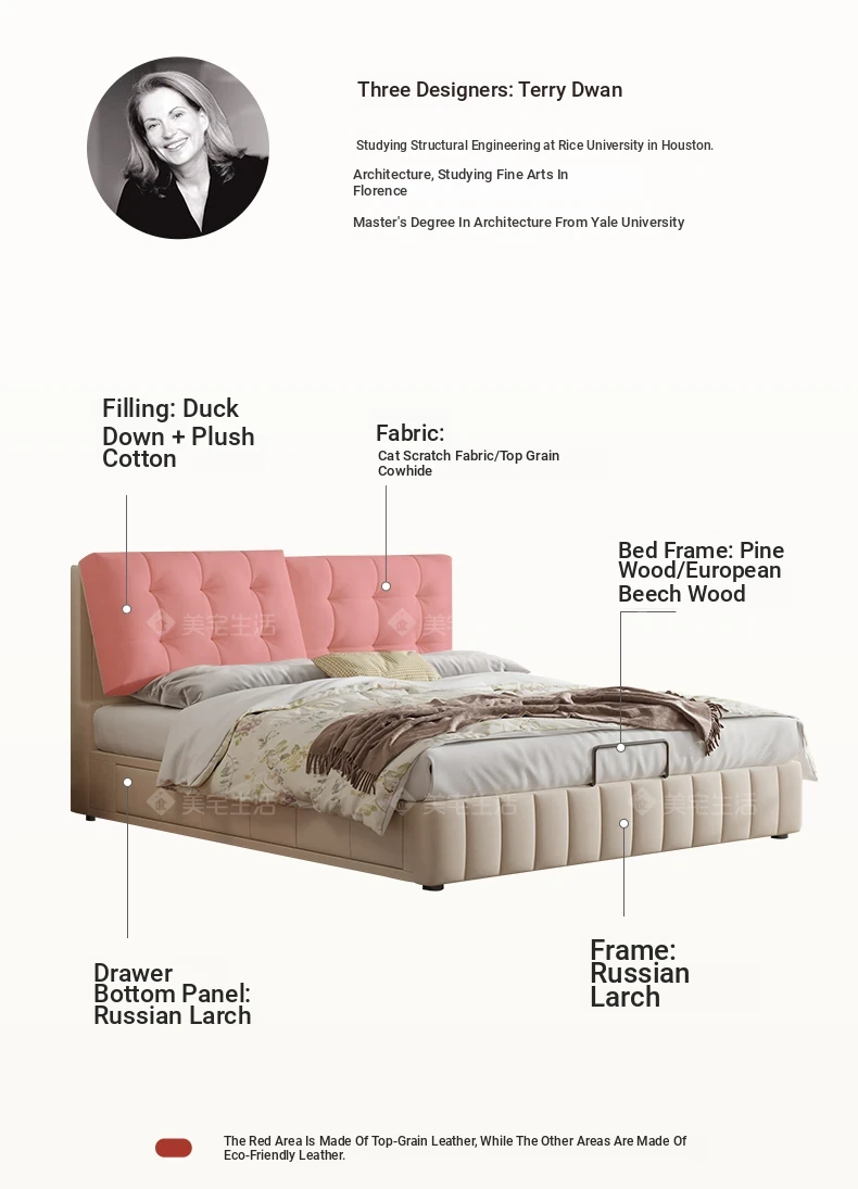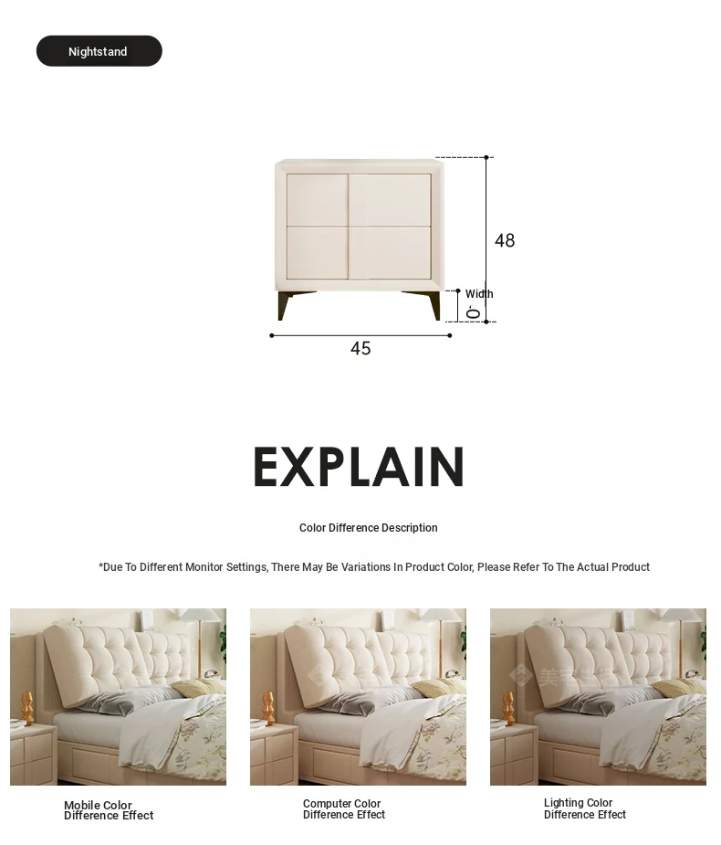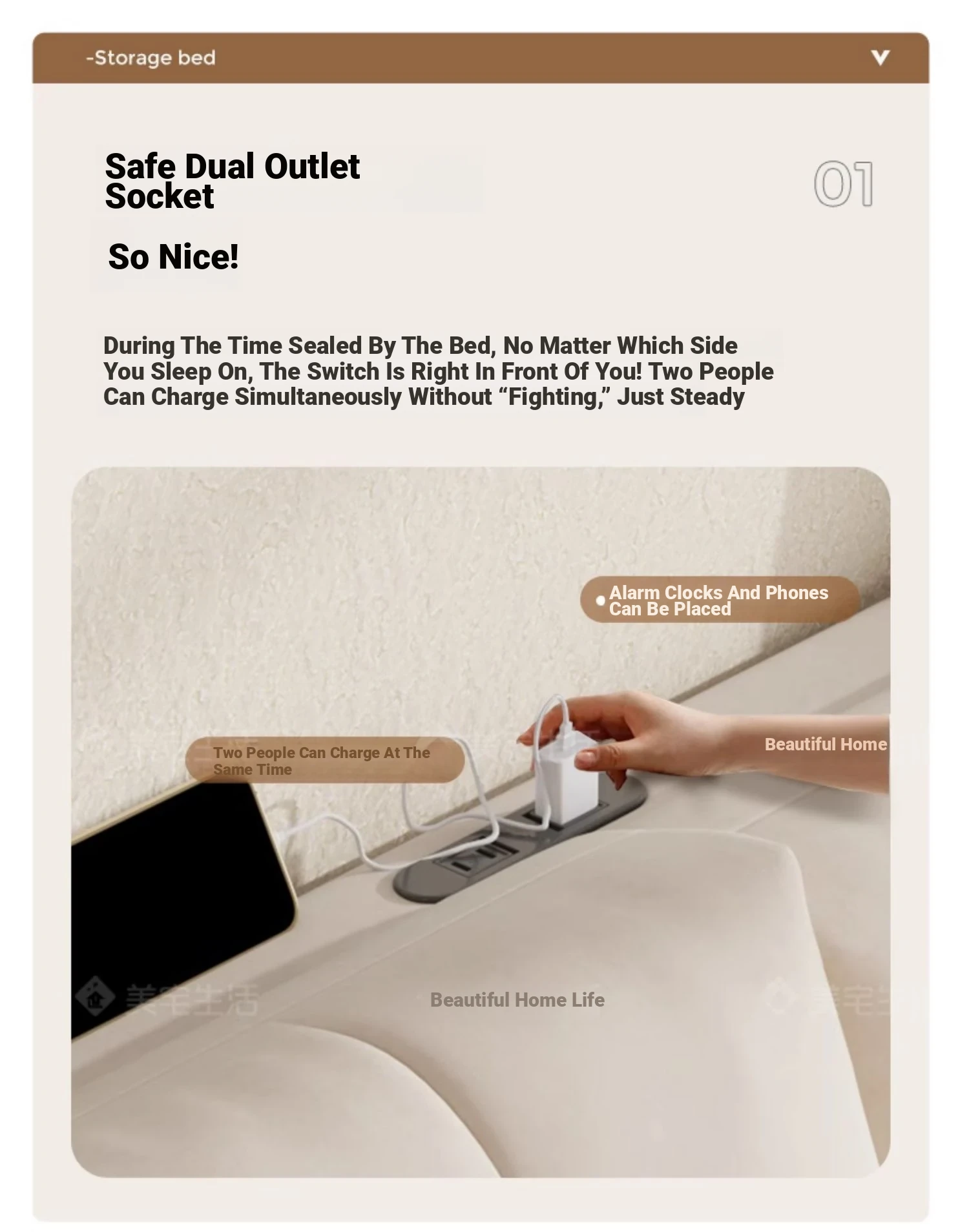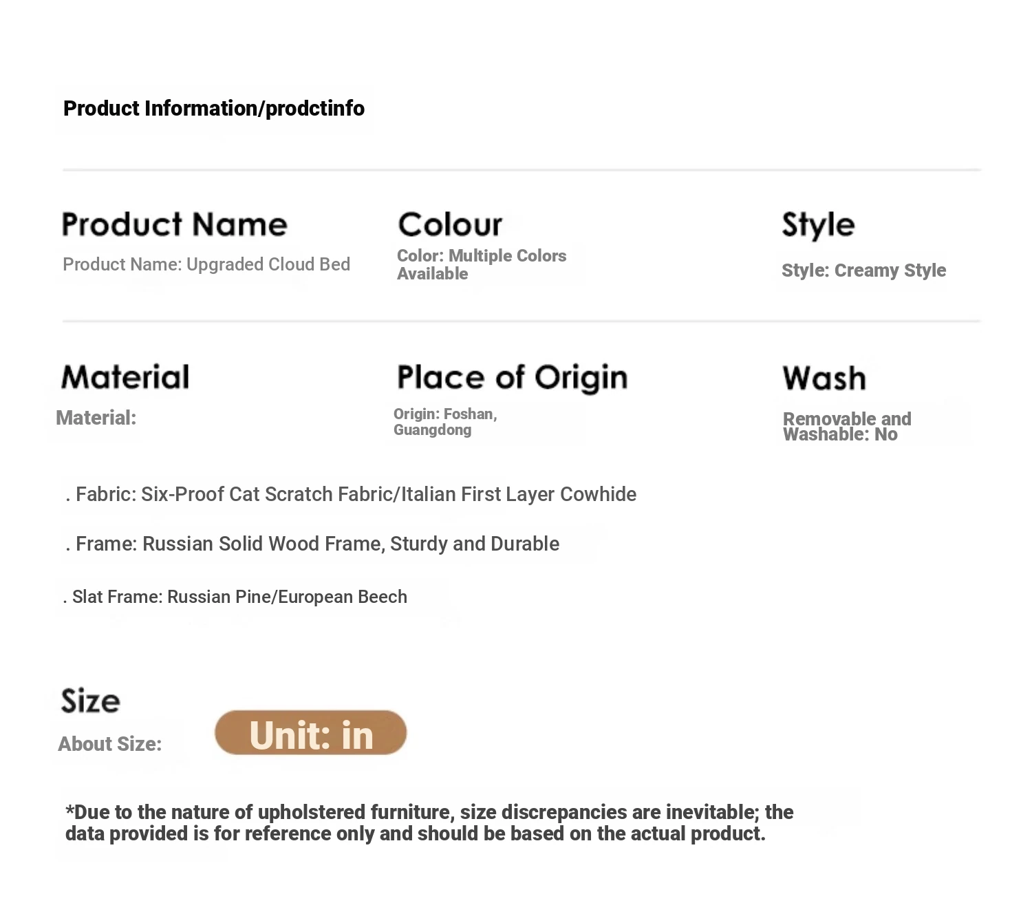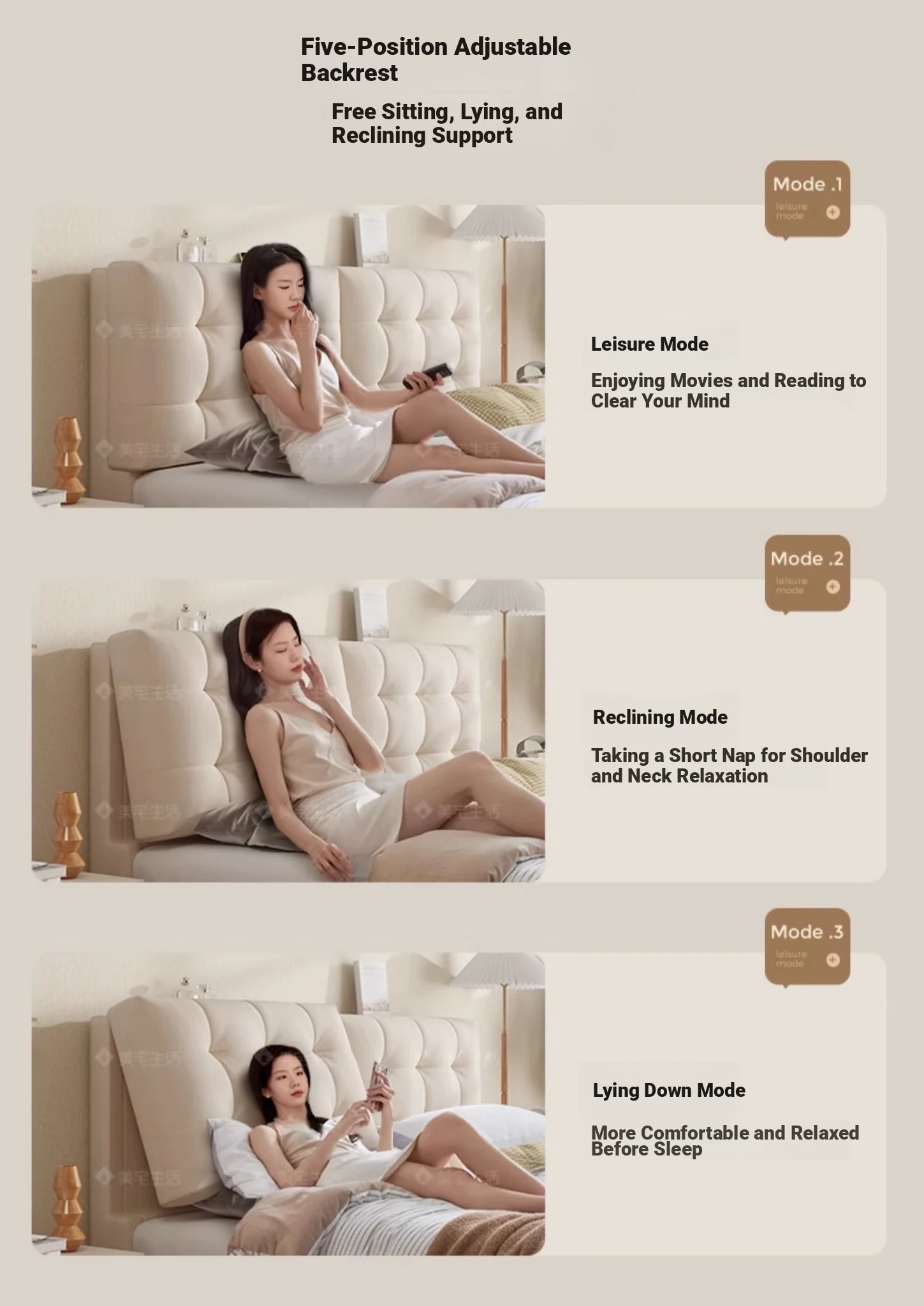 Modern Minimalist Cream Cloud Bed with Cat Scratch Fabric and Storage Drawers – Perfect for Couples in Master Bedrooms – Stylish New Wedding Bed for Your Dream Home!