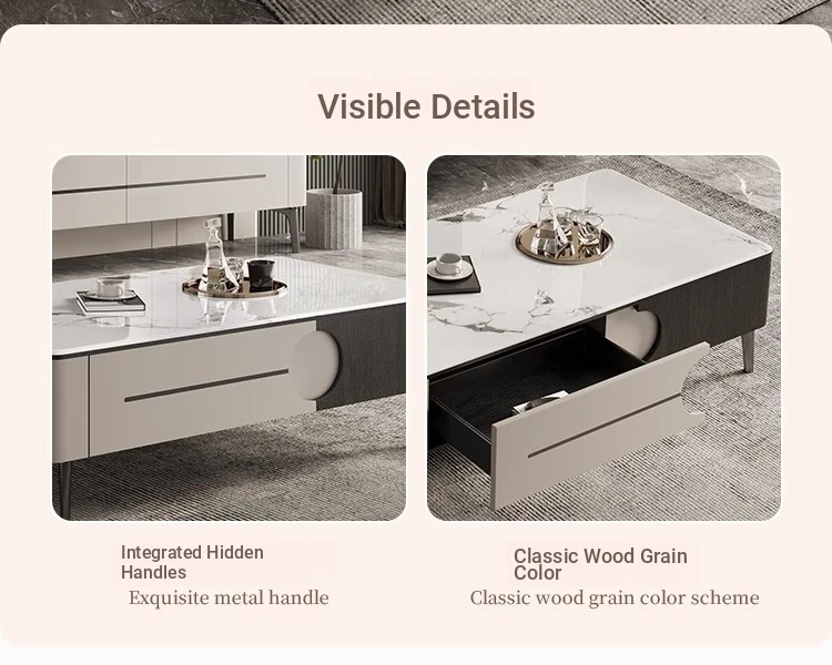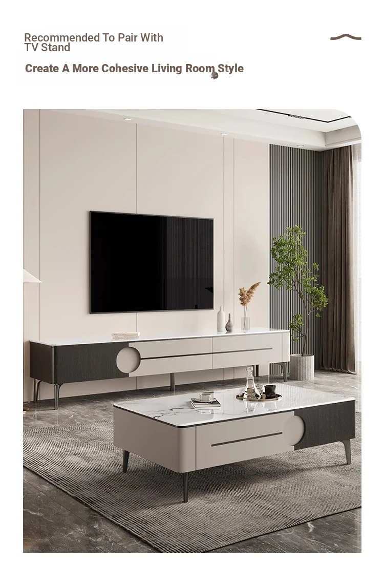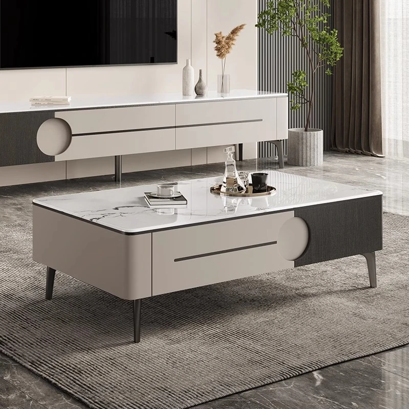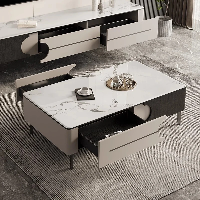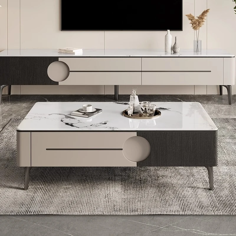 Modern Minimalist Rock Slab Coffee Table & TV Cabinet - Italian Style Micro-Crystal Stone High-End Living Room Furniture with Storage Solutions