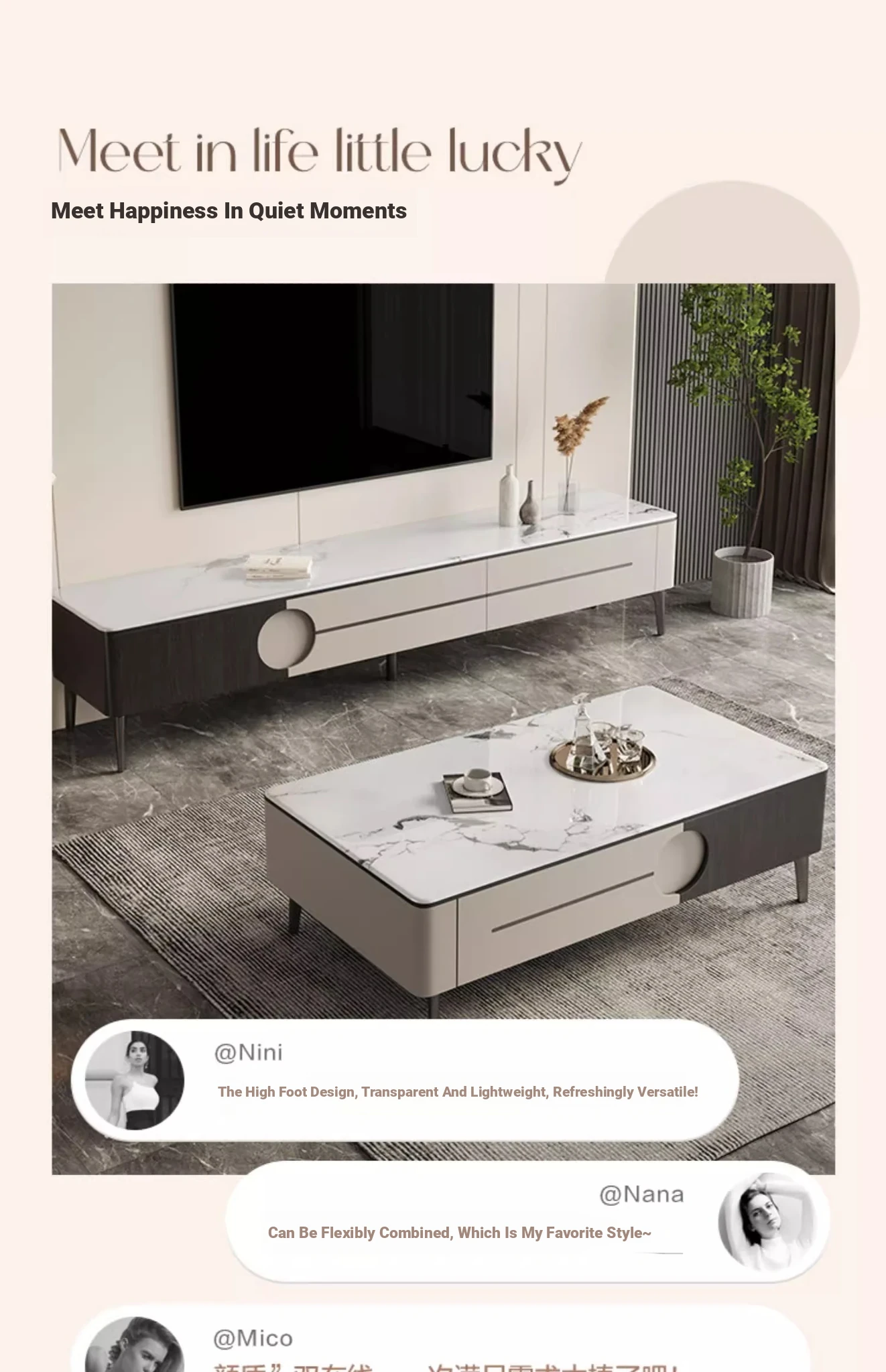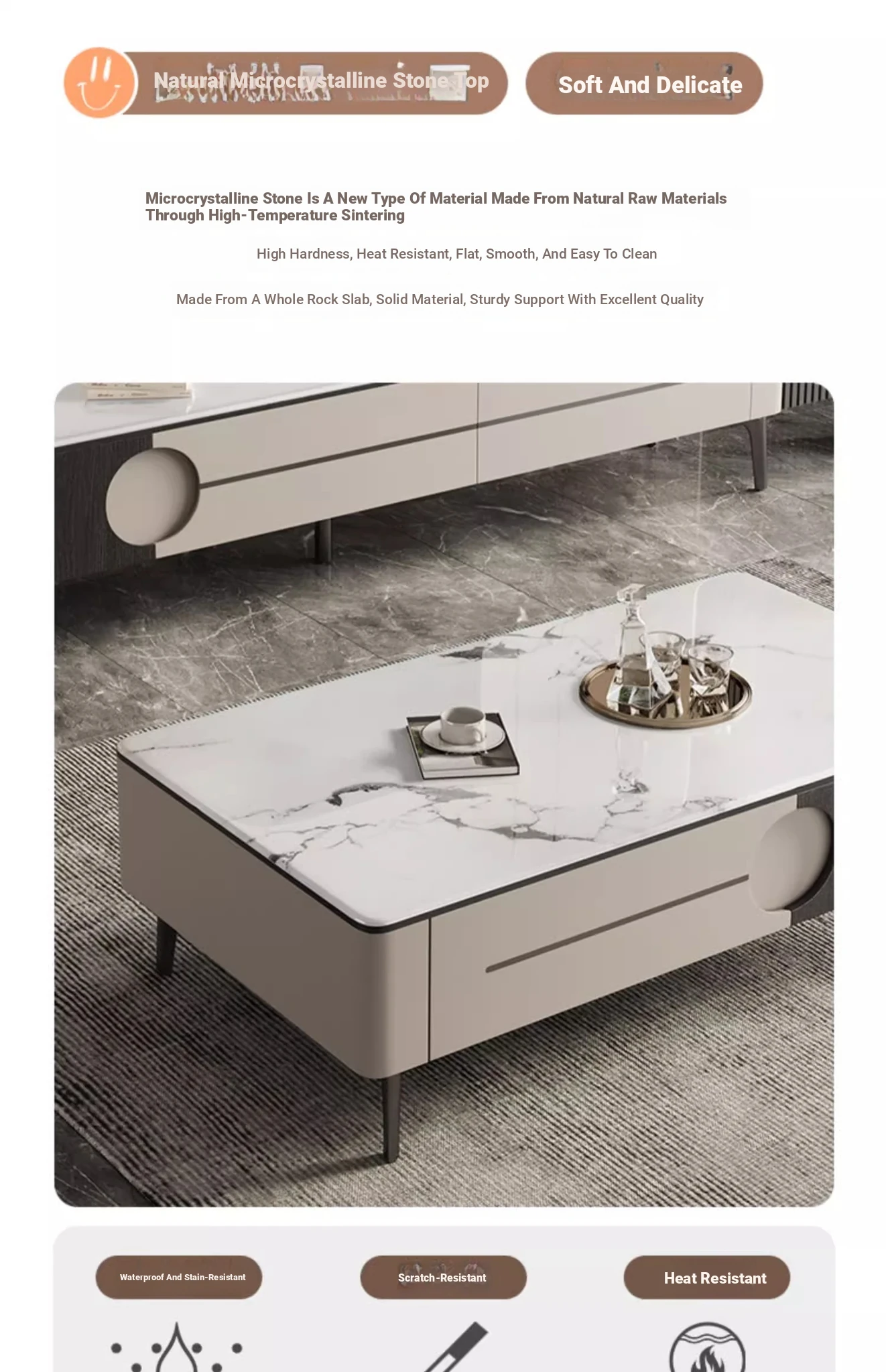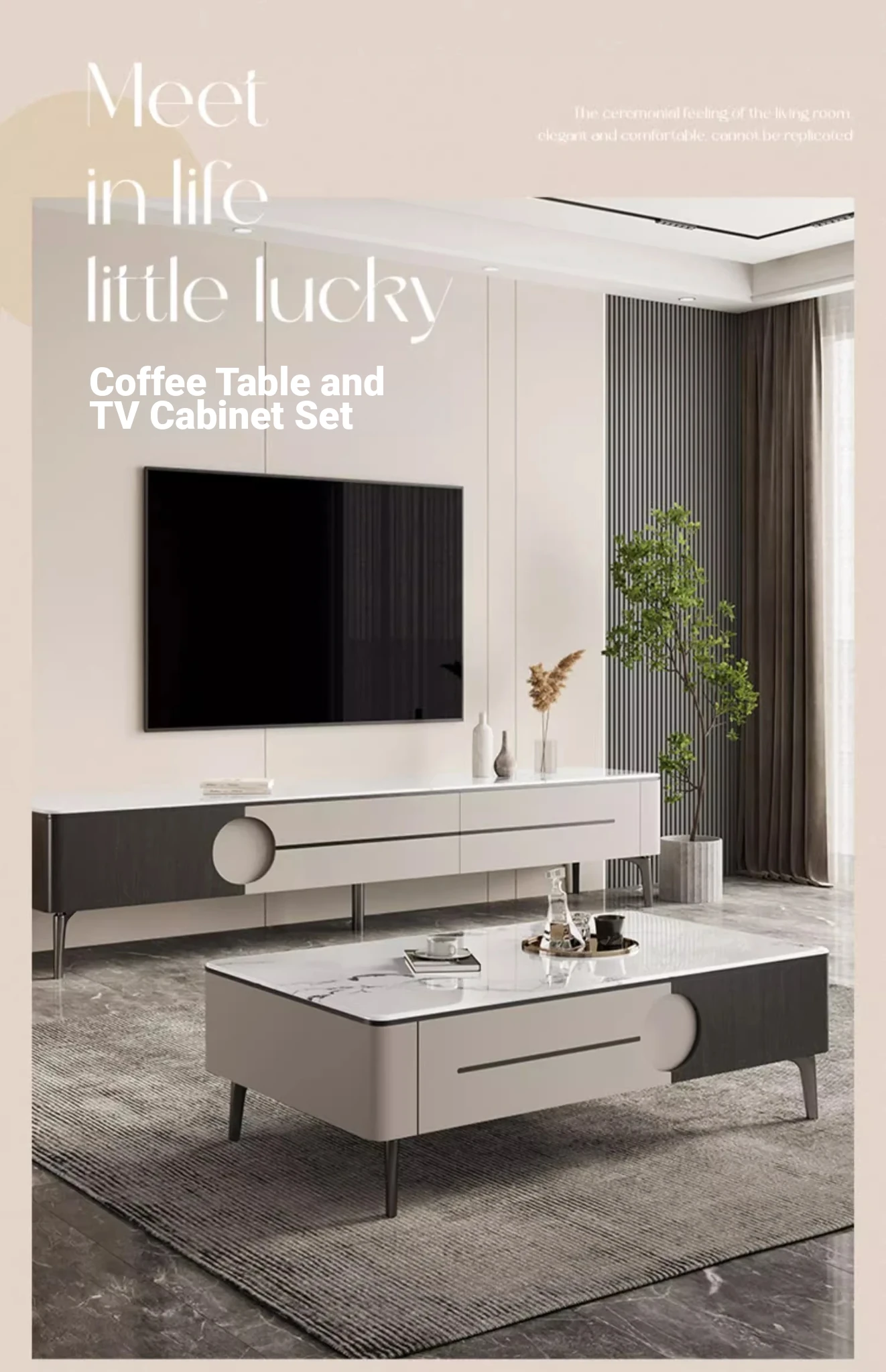 [Natural Microlite Table] 49.21 in Tea Table +78.74 in TV Cabinet