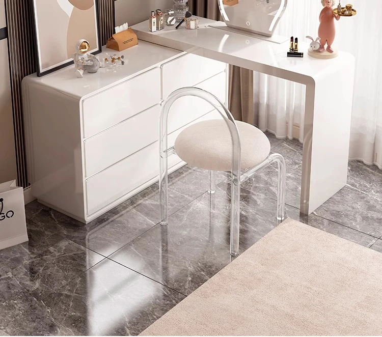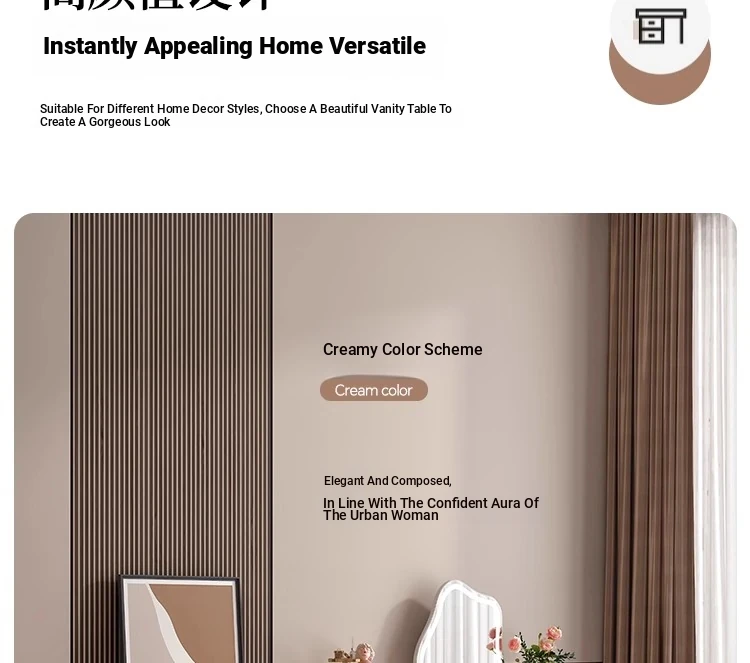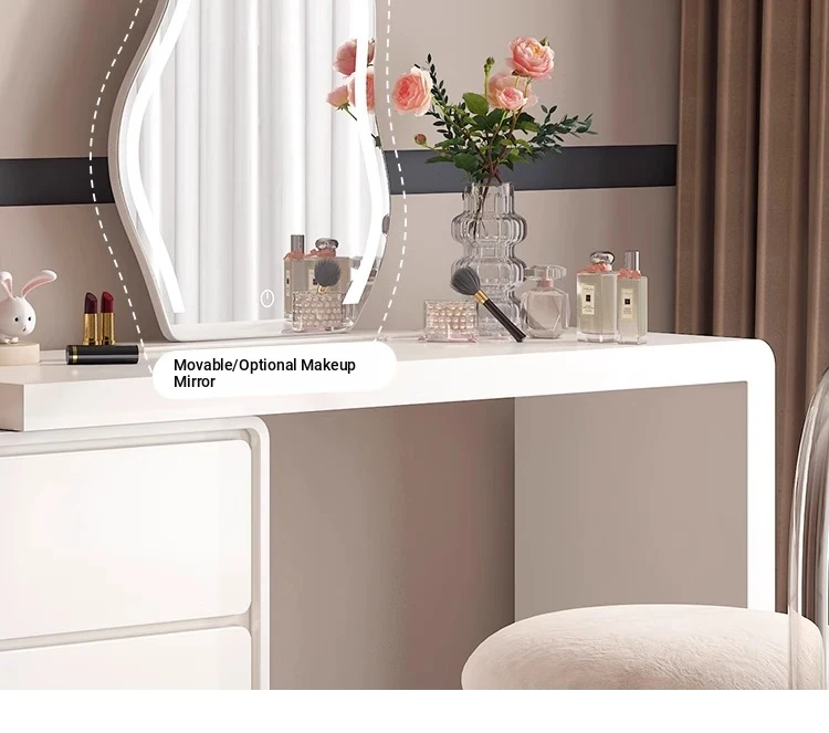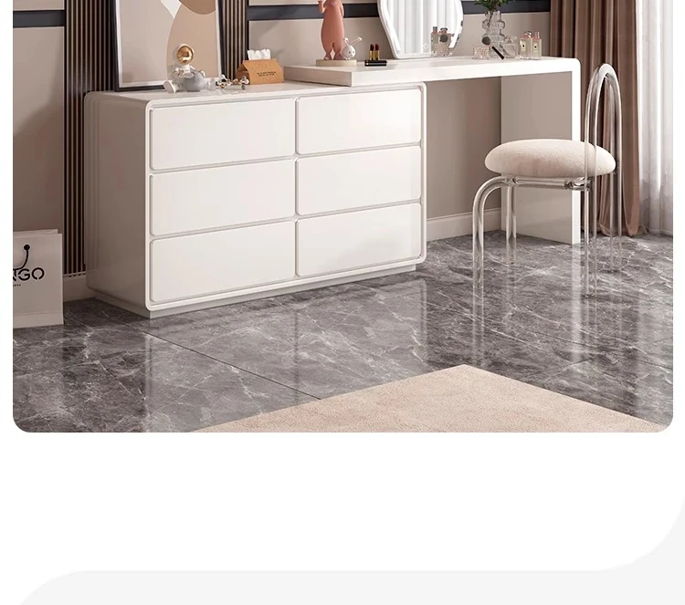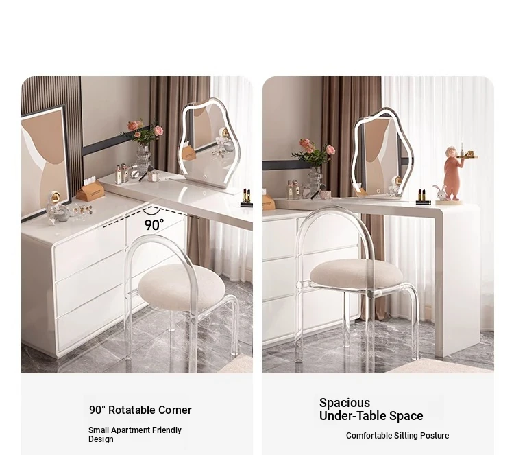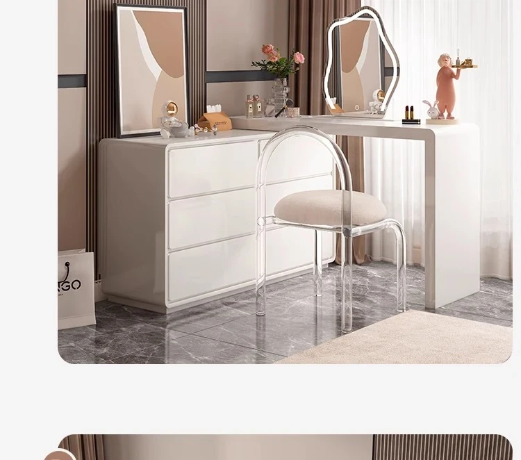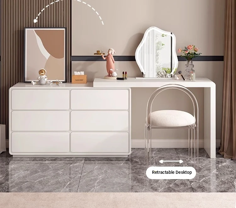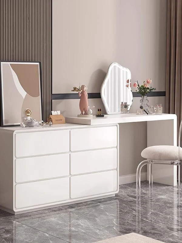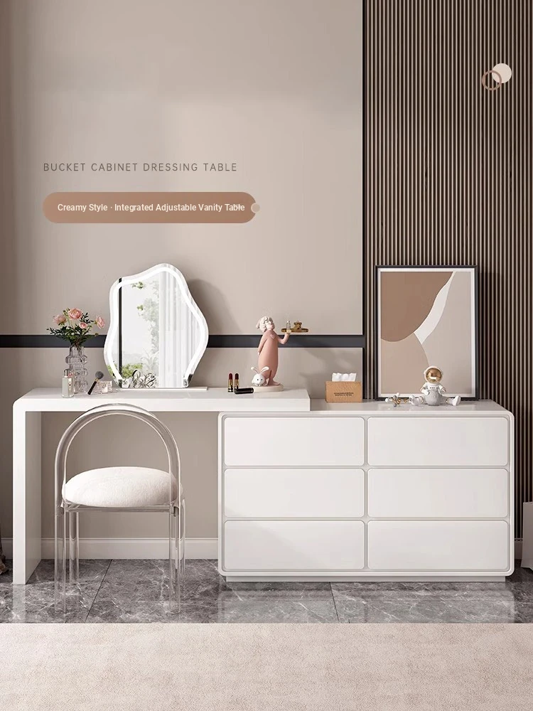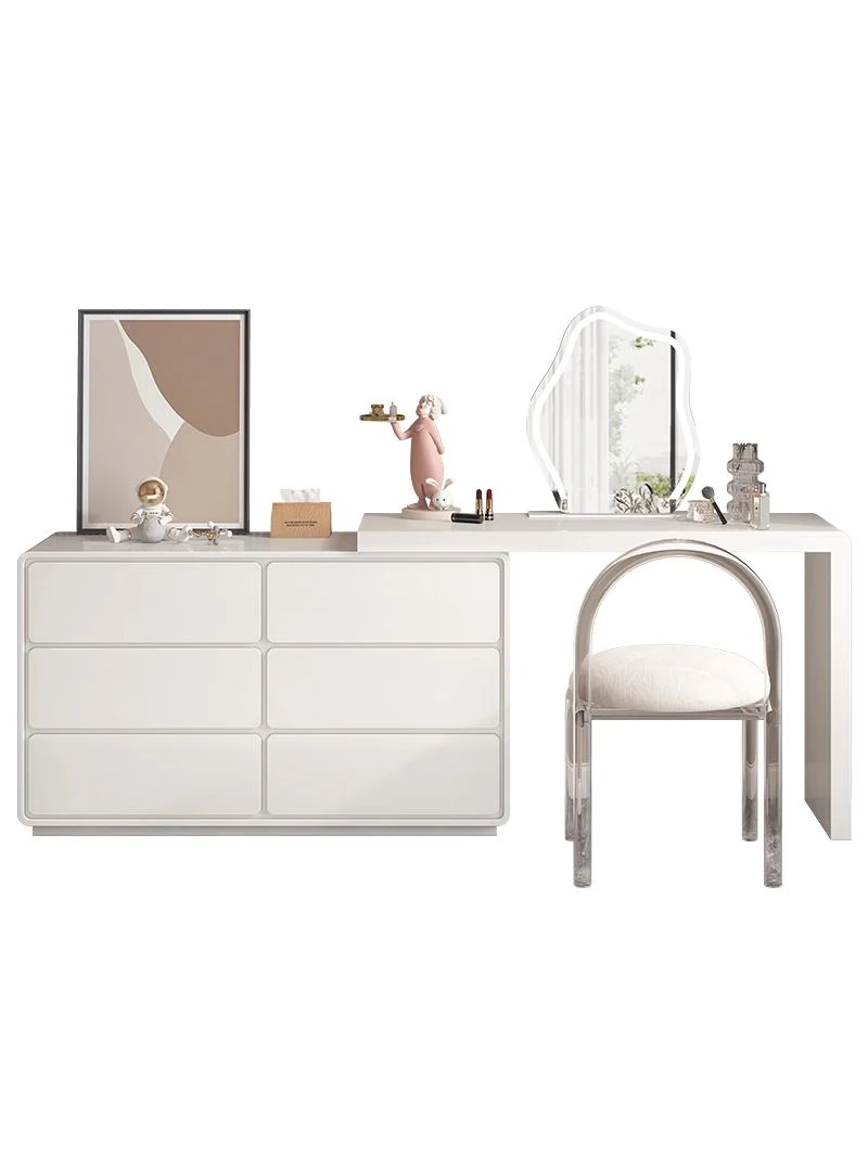 Modern Minimalist Solid Wood Vanity Dresser with Extendable Makeup Table - Creamy Corner Table for Bedroom or Bedside Use