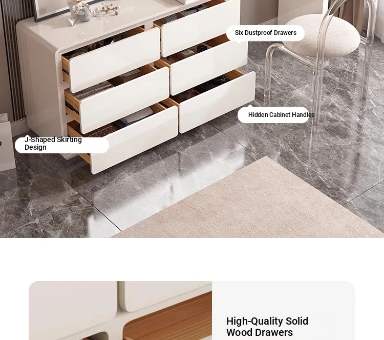 47.24 in dresser +47.24 in six-drawer cabinet + mirror + makeup stool (matte milk White)