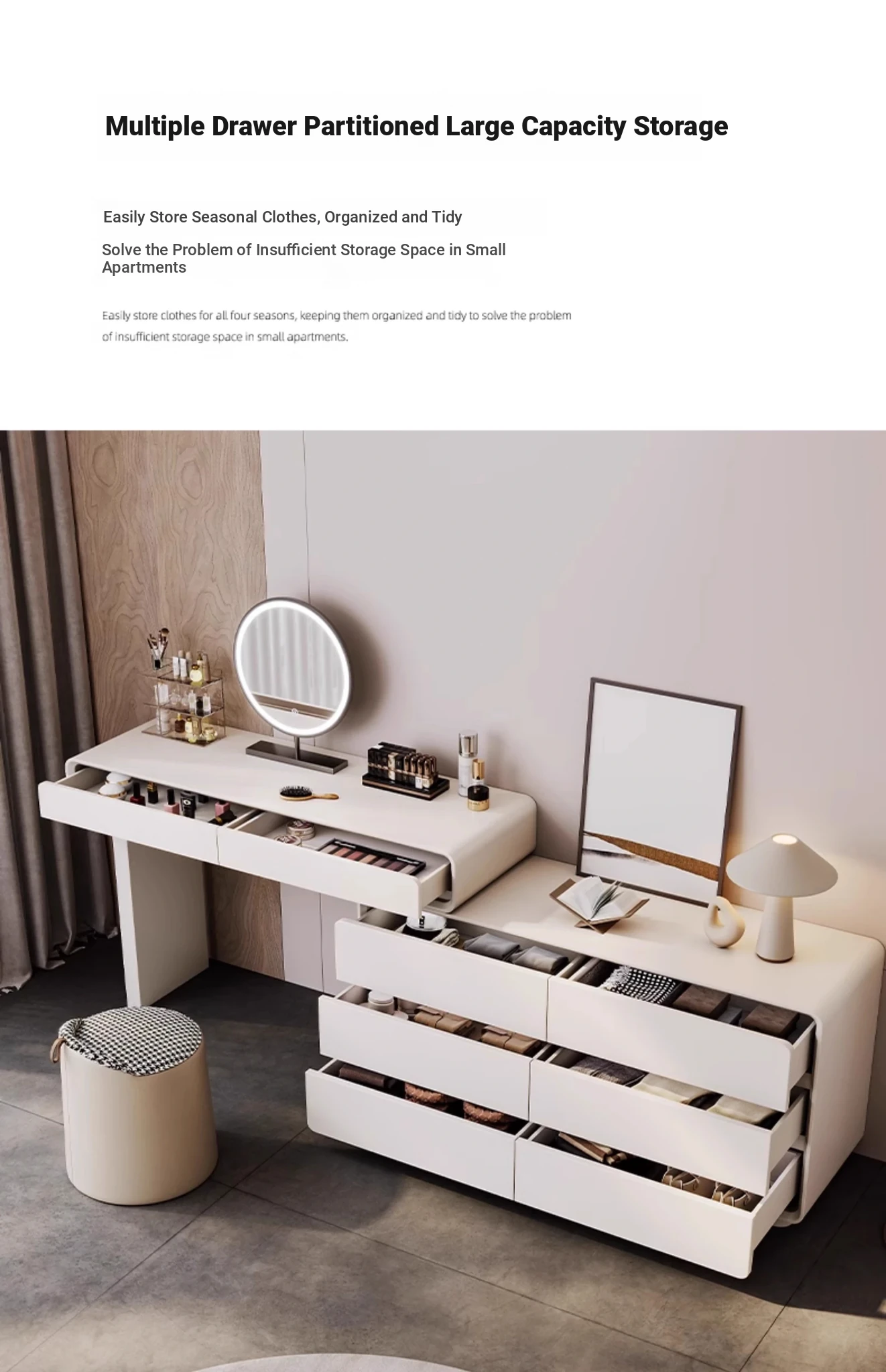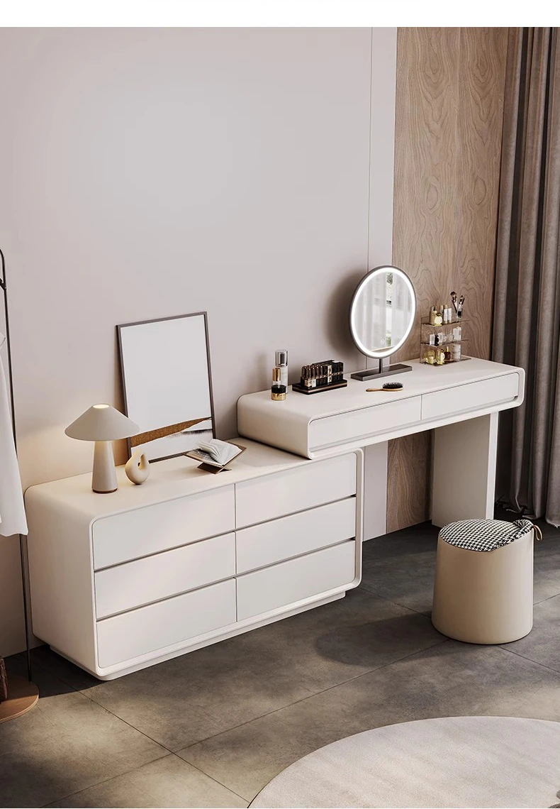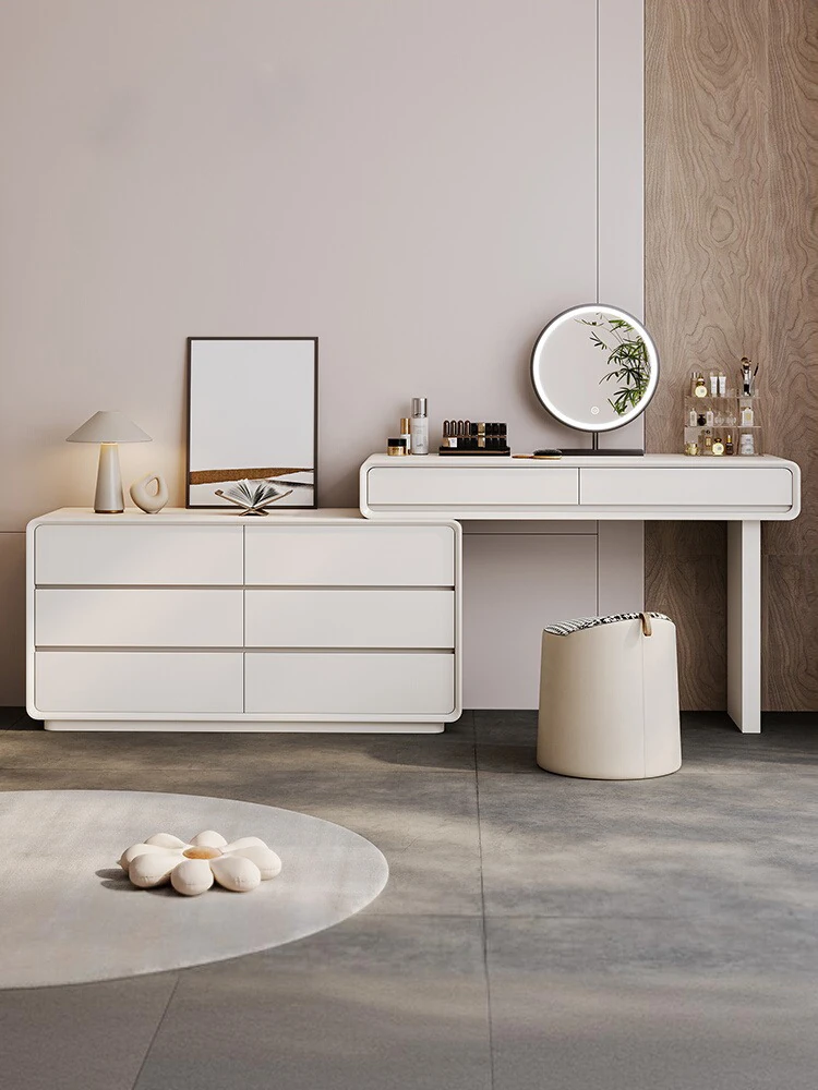 Modern White Vanity Dresser - Chic Minimalist Design for Bedroom, Stylish High-End Touch for Master Suite, Perfect for Your Makeup Routine