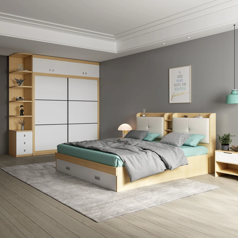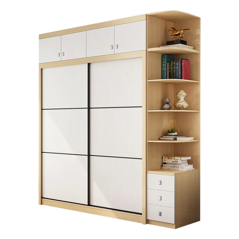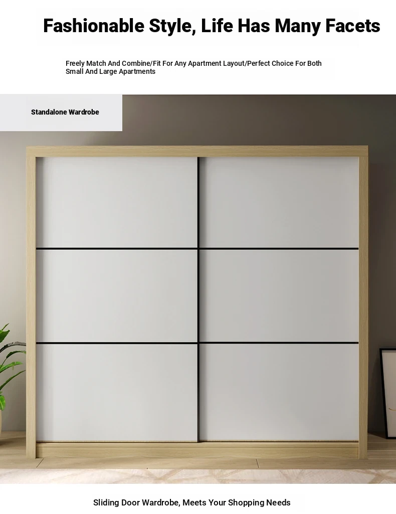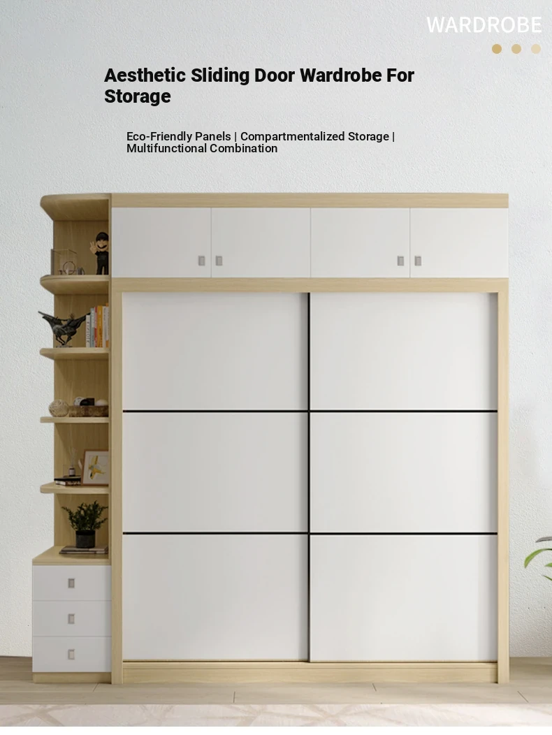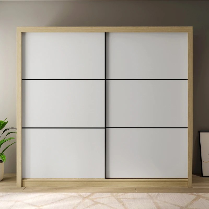 Nordic Natural Wood Wardrobe with Modern Sliding Doors – Stylish, Space-Saving Bedroom Storage Solution