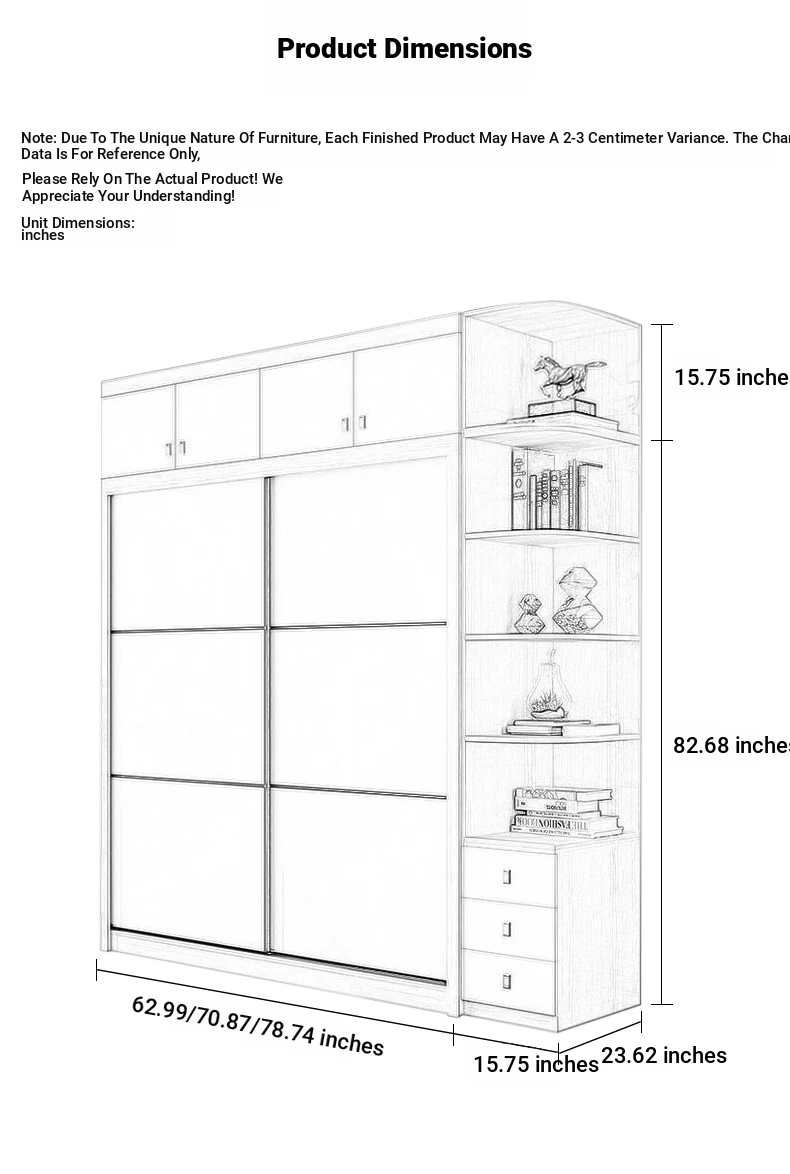 62.99in single wardrobe + side cabinet + top Cabinet