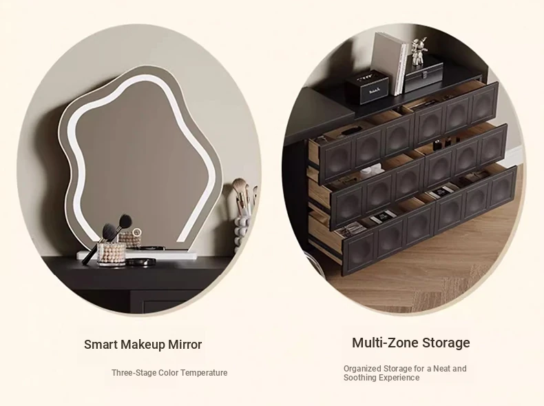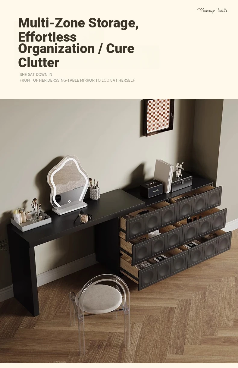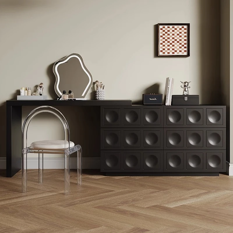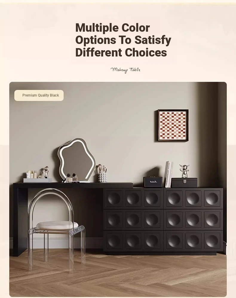 47.24 in makeup table +47.24 in six-bucket cabinet + cloud mirror + stool [textured black solid wood]]