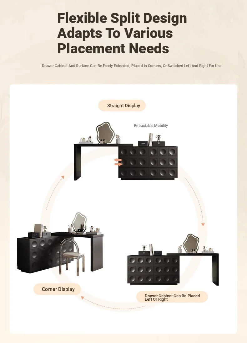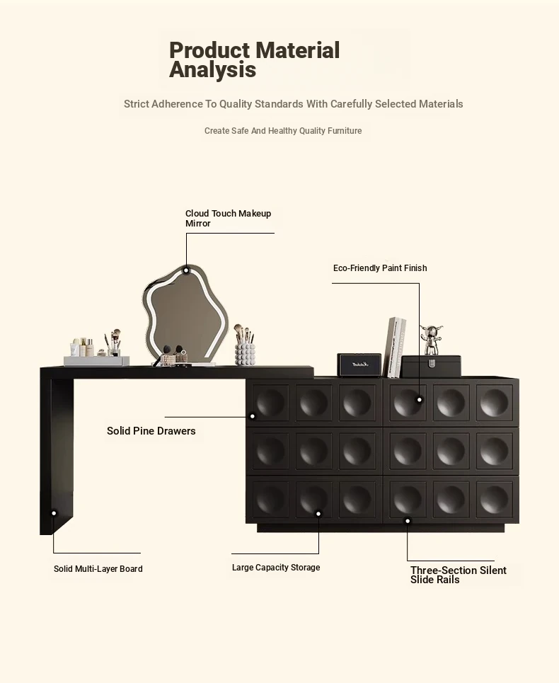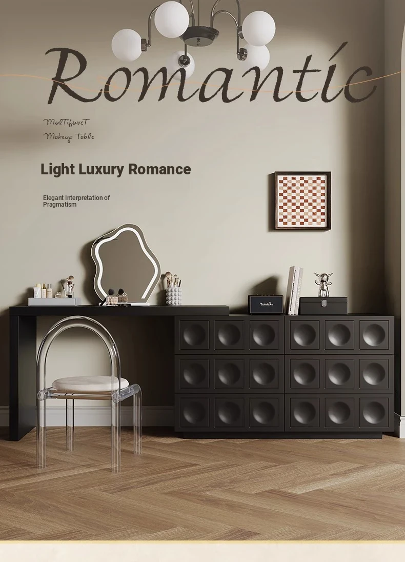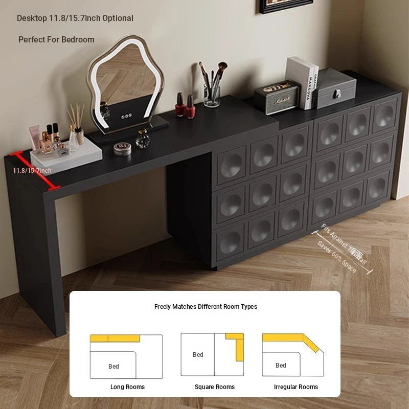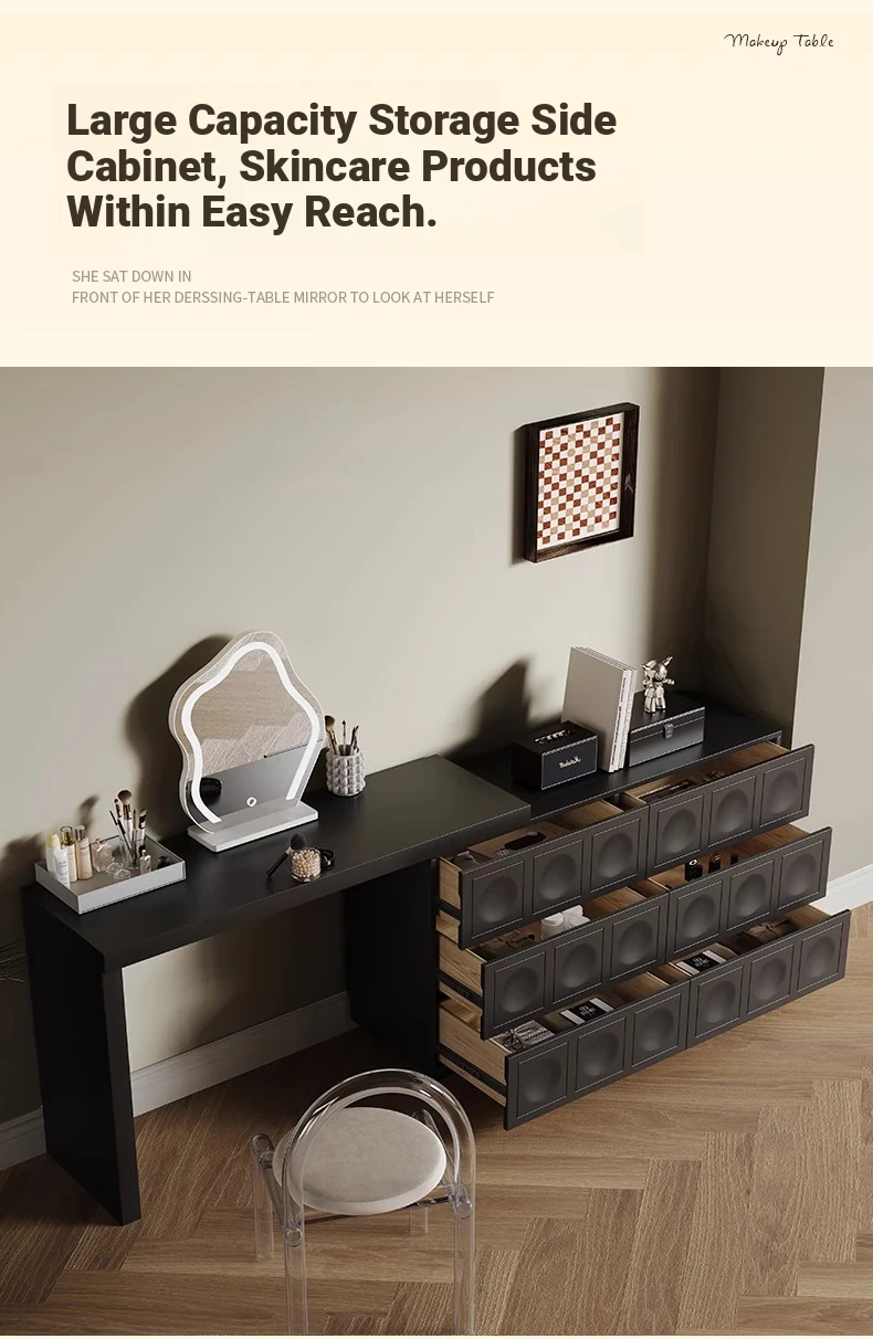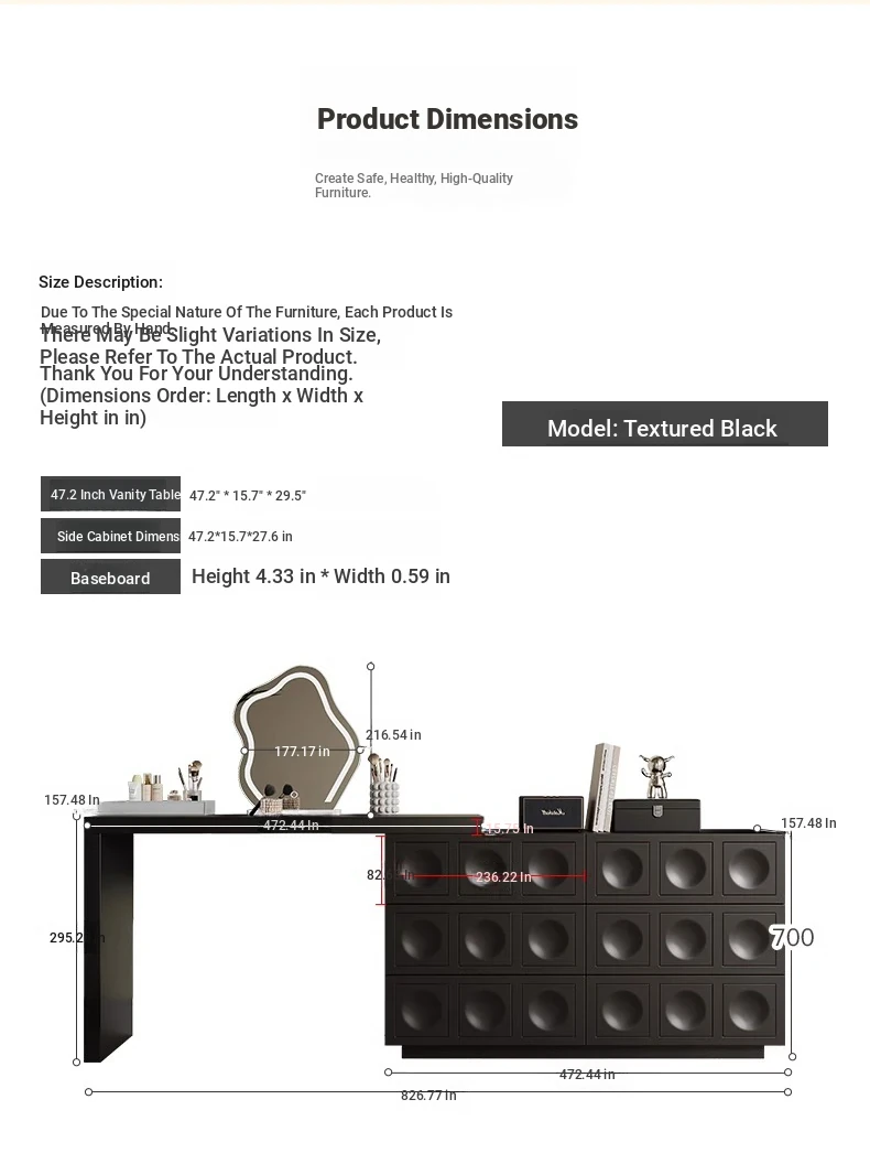 47.24 in makeup table +47.24 in six-bucket cabinet + cloud mirror [textured black solid wood]]
