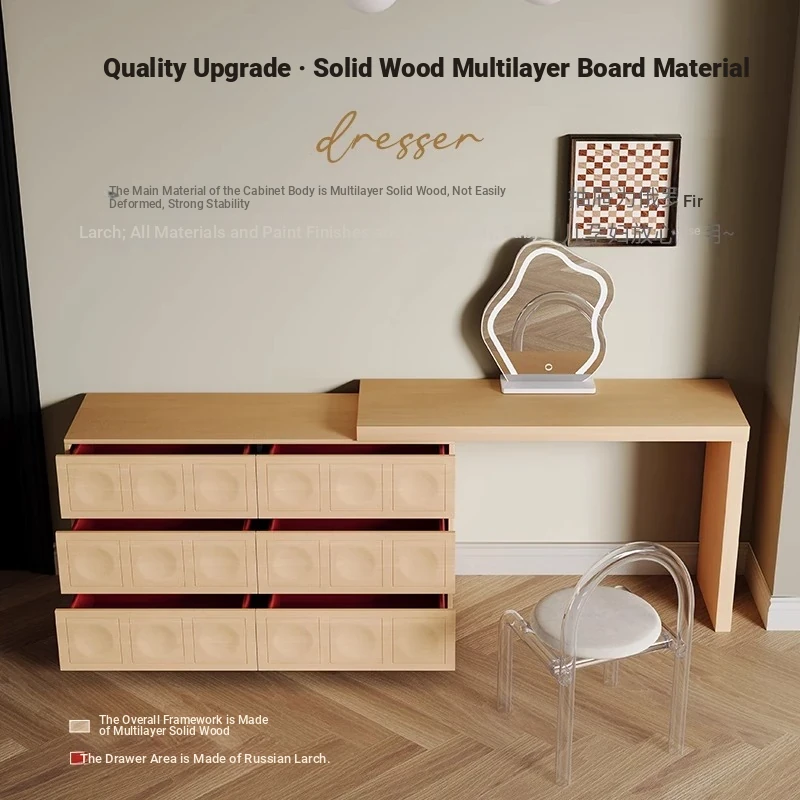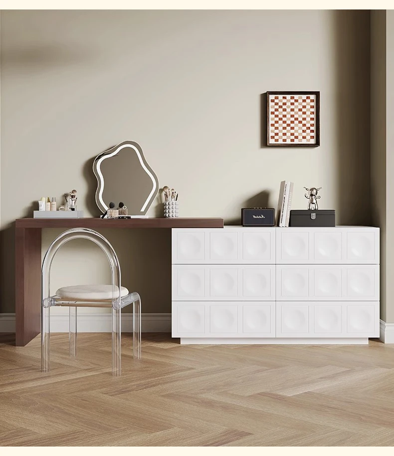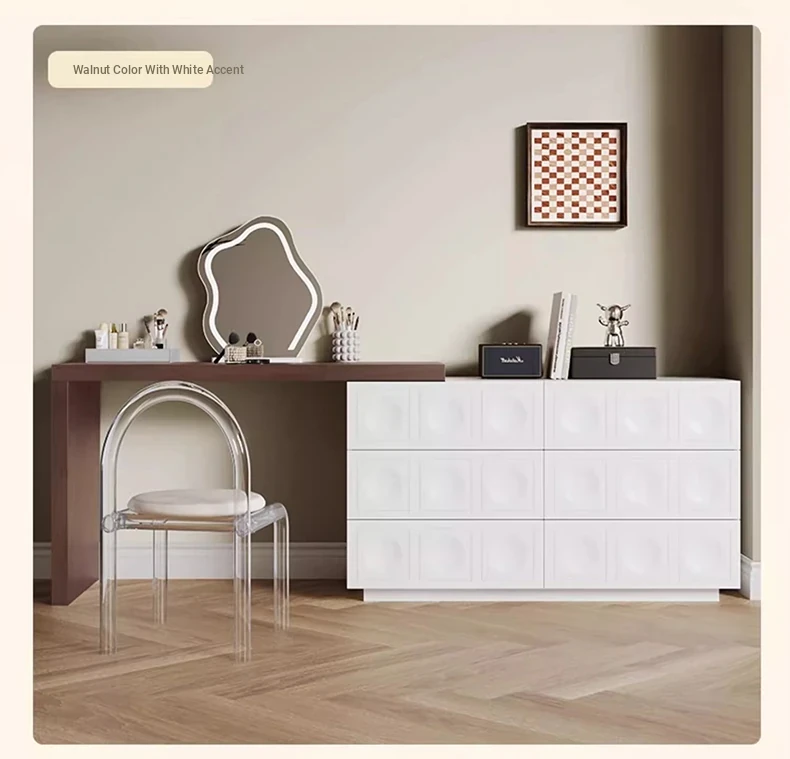 47.24 in Makeup Table +47.24 in Six Bucket Cabinet + Round Stool [Milk White All Solid Wood]]