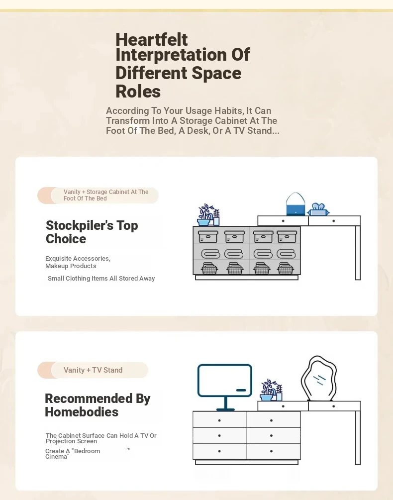47.24 in makeup table +47.24 in six bucket cabinet + cloud mirror [milk White
