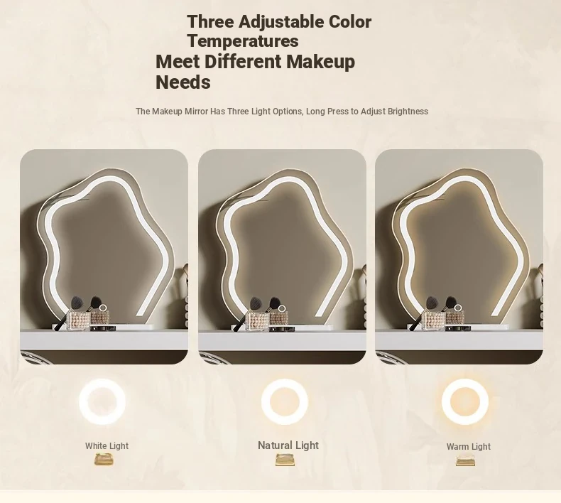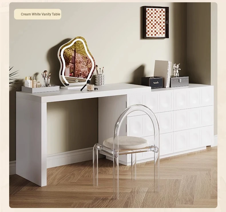 47.24 in makeup table +47.24 in six-bucket cabinet + cloud mirror + acrylic stool [milk white solid wood]]