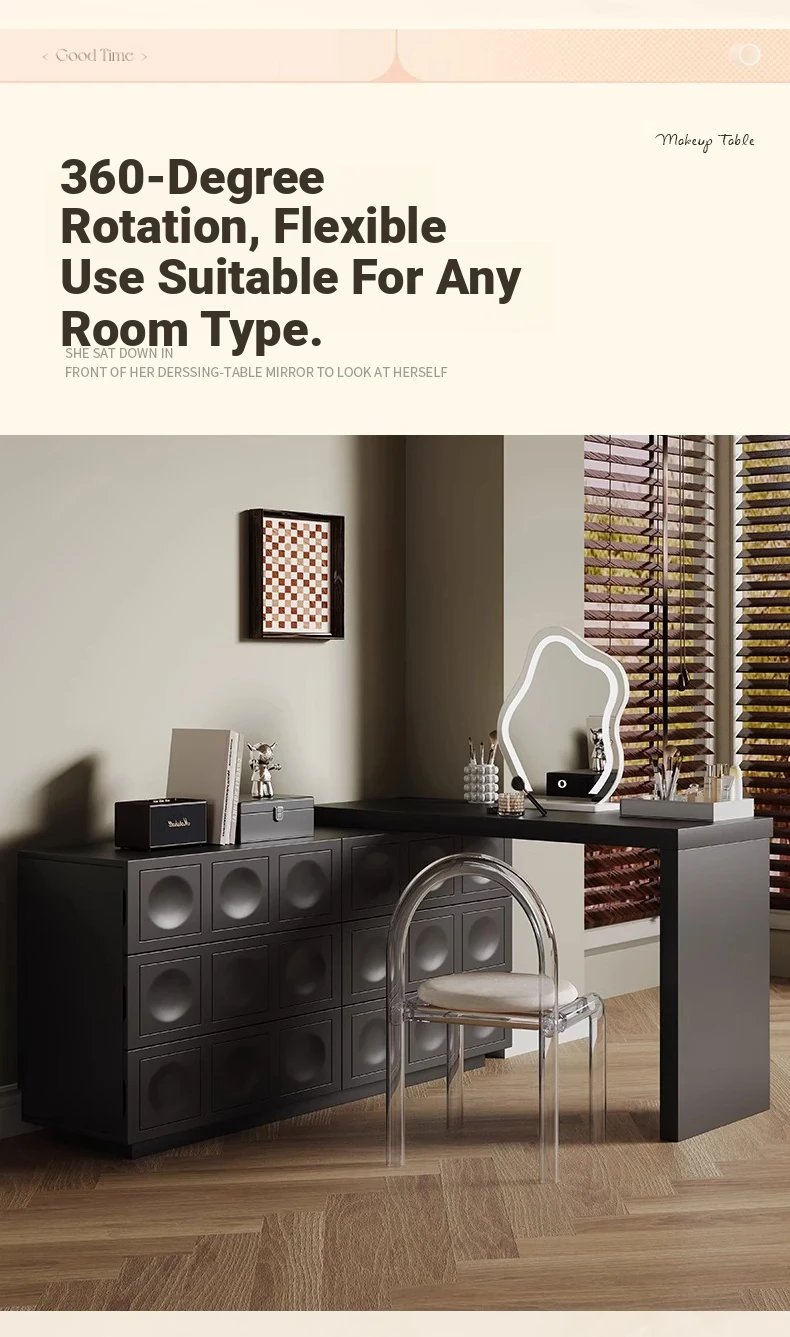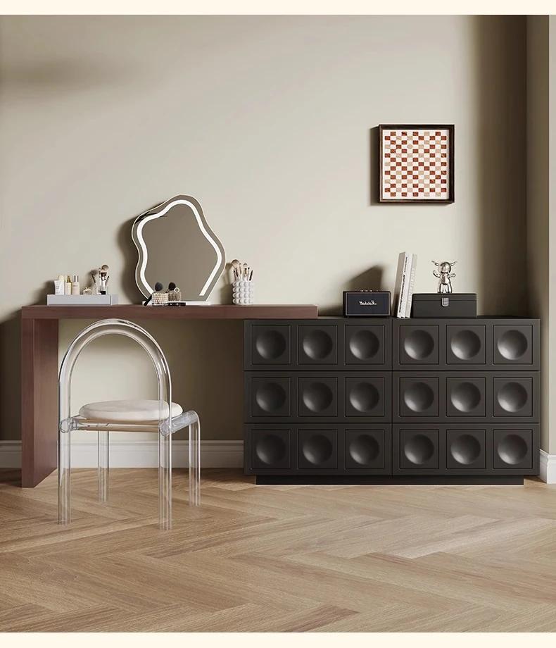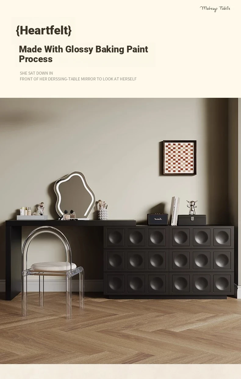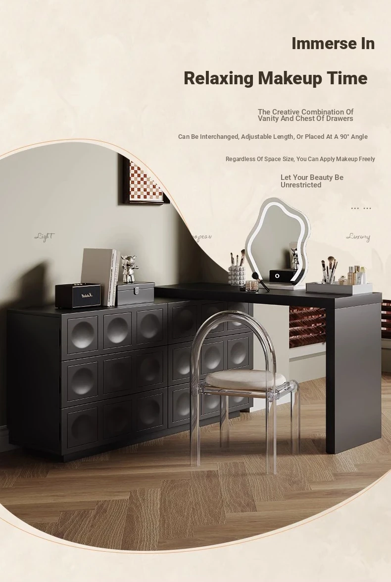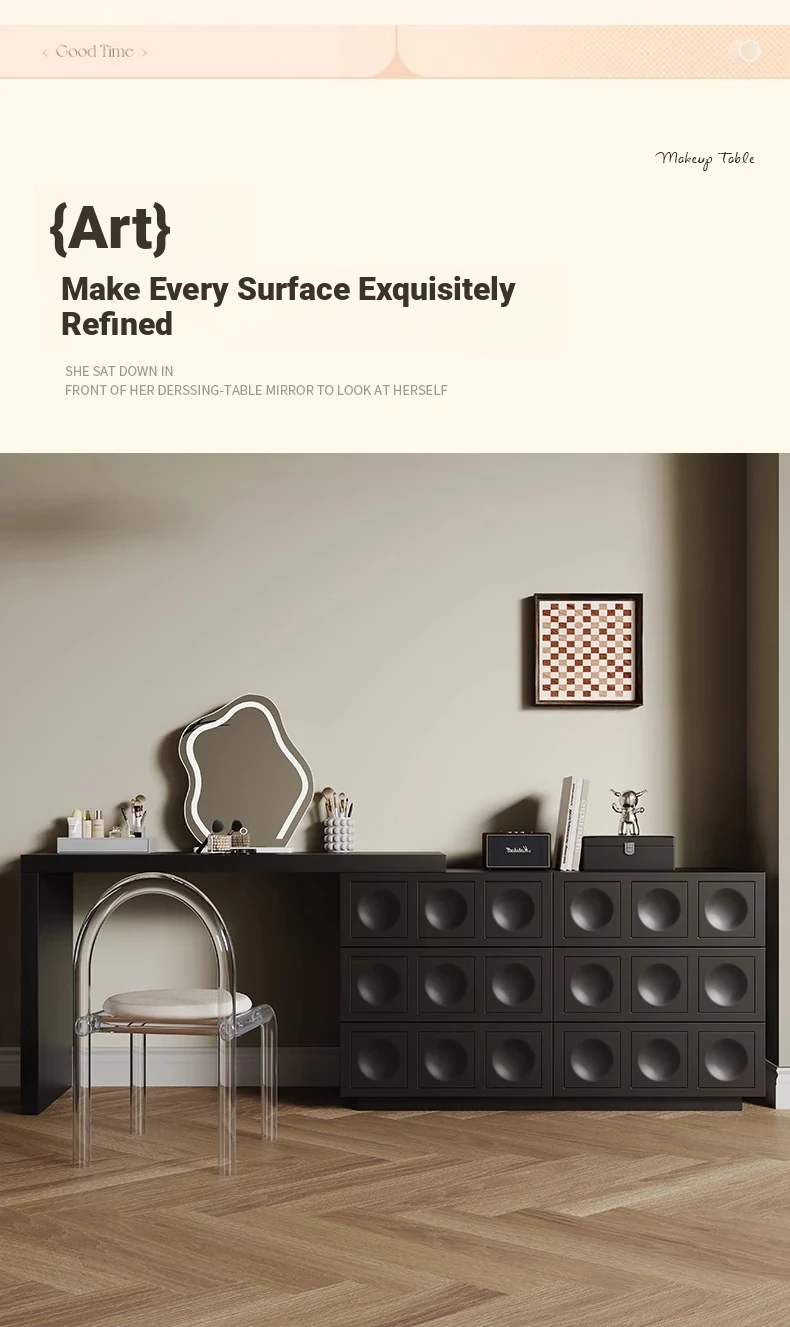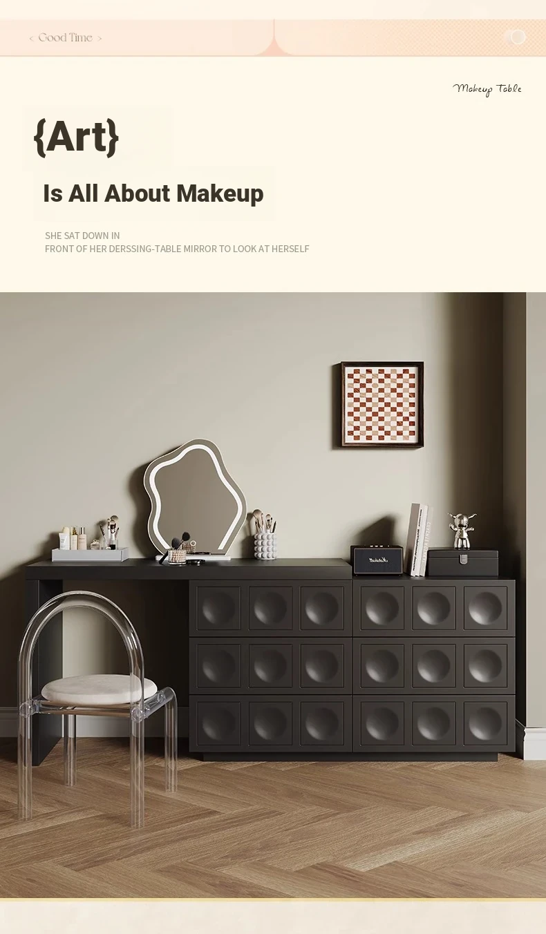 47.24 in makeup table +47.24 in six-bucket cabinet + cloud mirror + acrylic stool [textured black solid wood]]