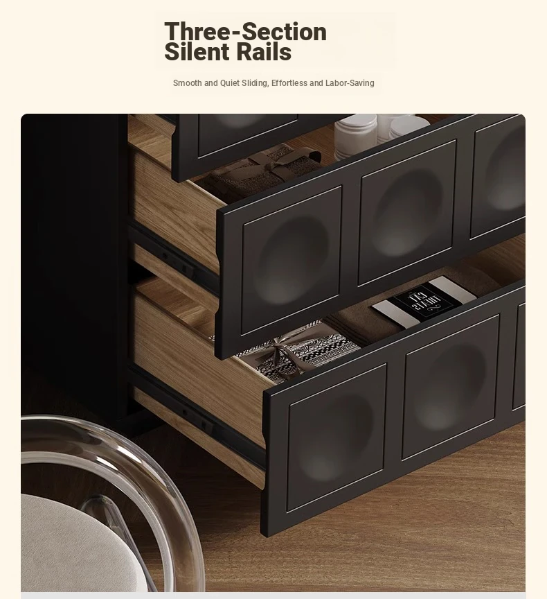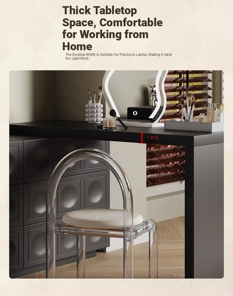 47.24 in makeup table +47.24 in six-bucket cabinet + acrylic stool [textured black solid wood]]