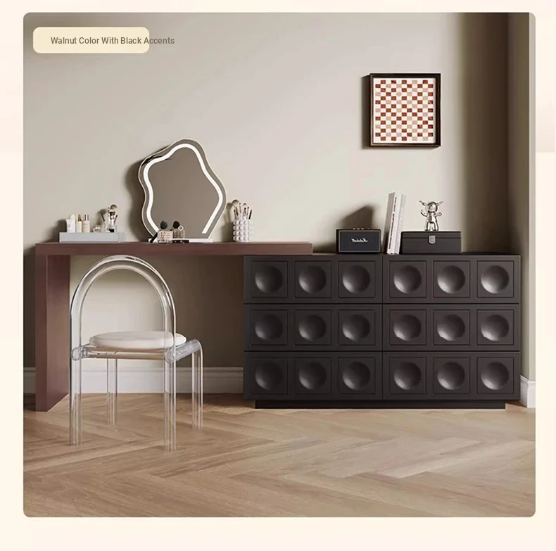 1.2-meter makeup table +1.2-meter six-bucket cabinet [textured black solid wood]]