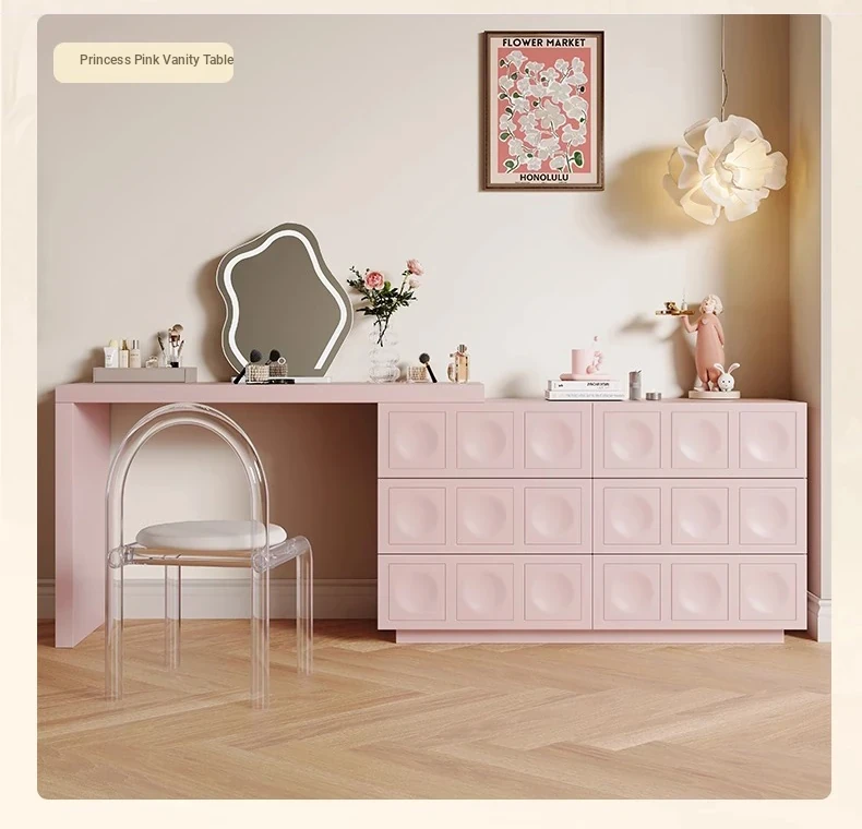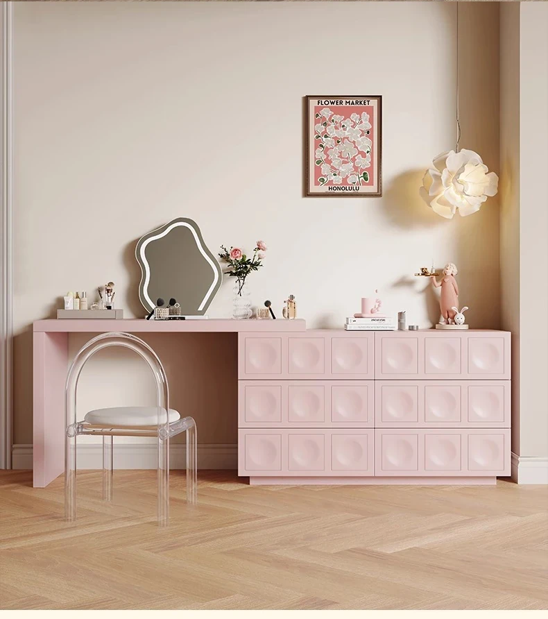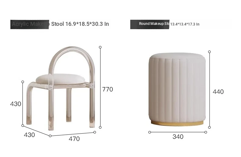 47.24 in Makeup Table +47.24 in Six Bucket Cabinet + Cloud Mirror + Round Stool