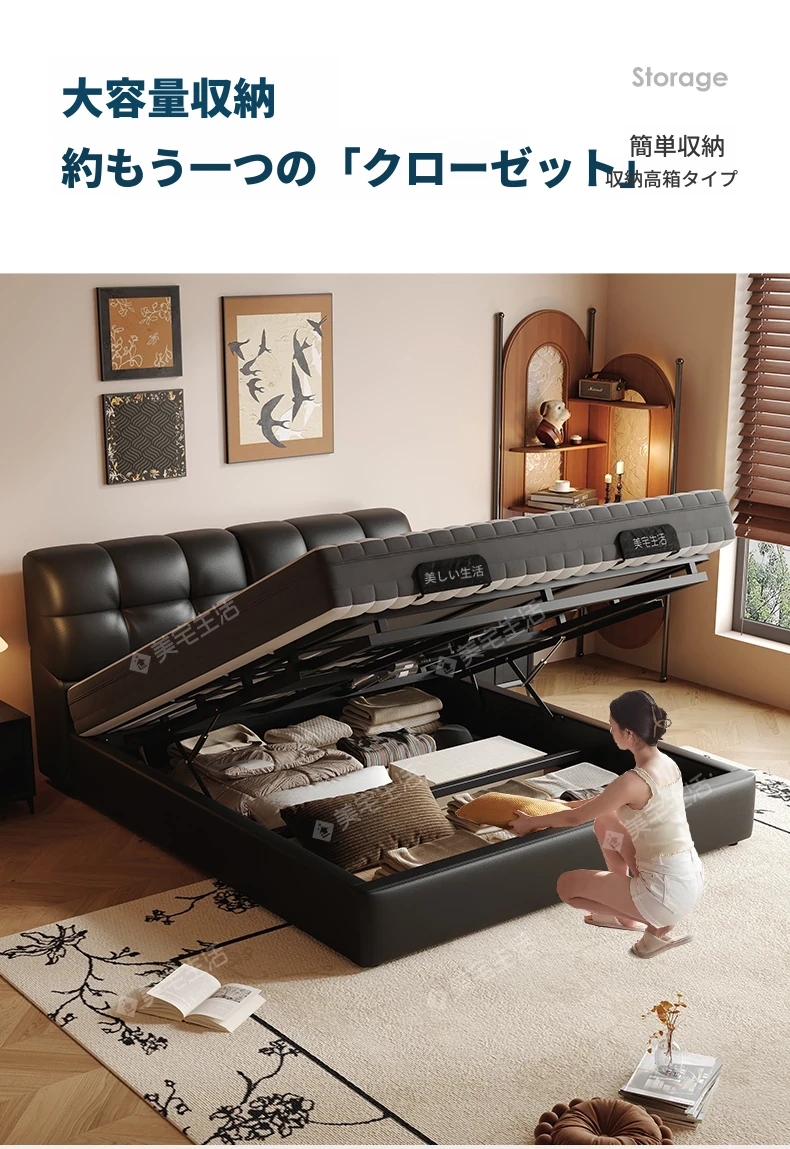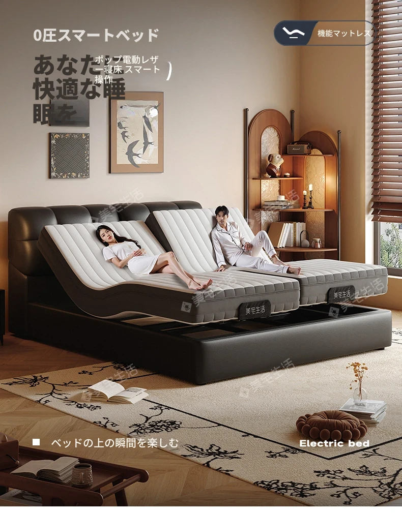 2025年新作!ブラックポフ電動スマートベッド - 自動昇降機能付き、カップルが互いに邪魔しない収納ベッド!快適な睡眠空間を実現し、生活をより便利にします。