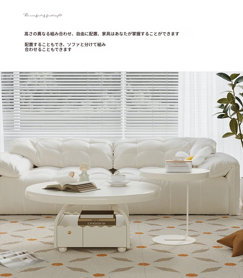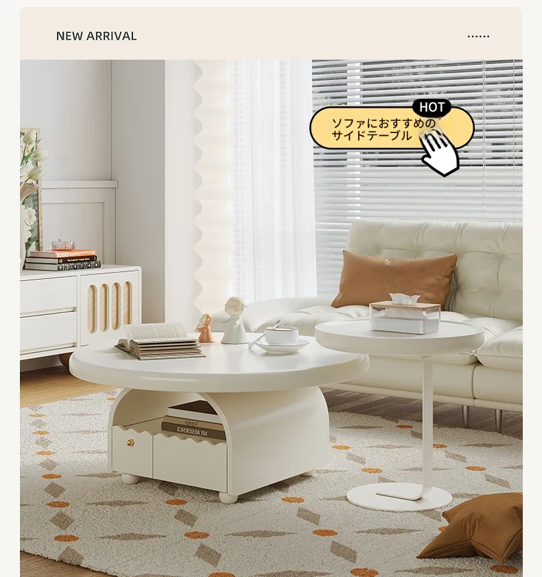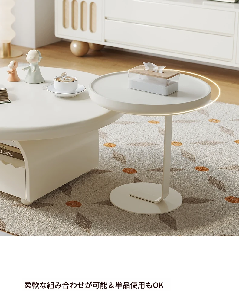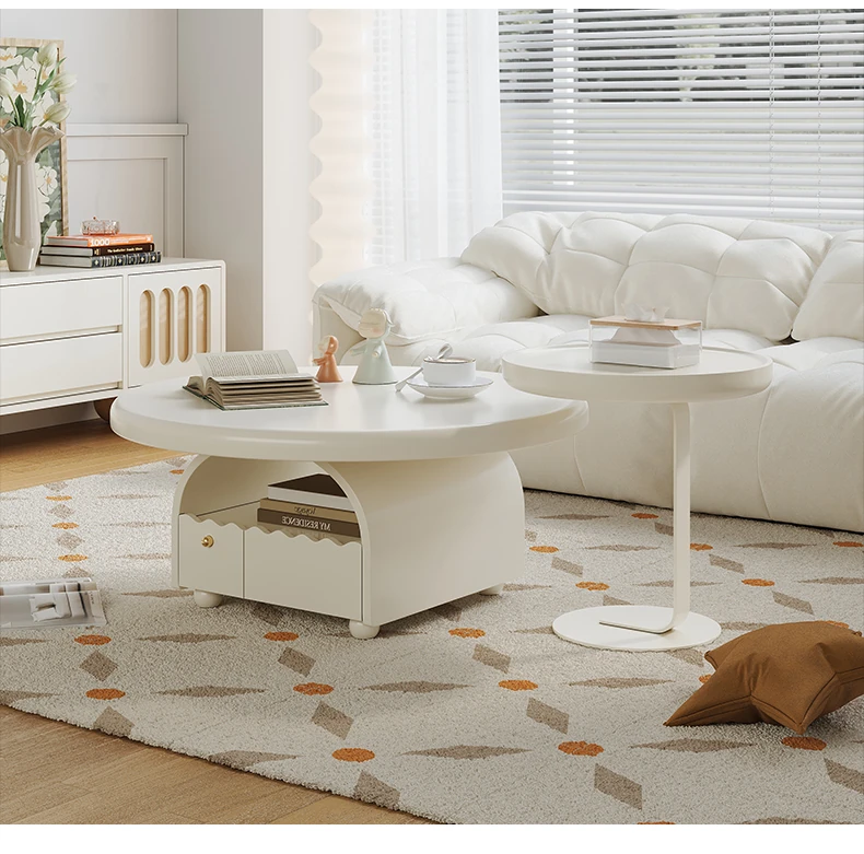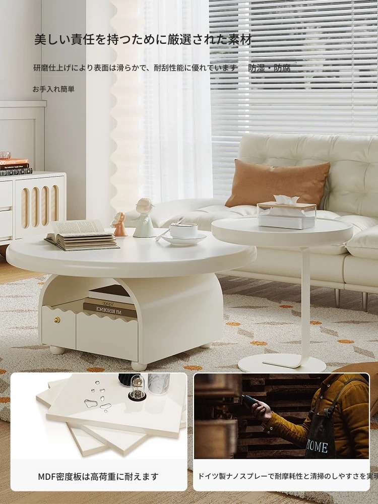 2024年新款!モダンでシンプルなデザイン・高級感のある創意ラウンドリビングルームテーブルセット、小型住宅にも最適なクリーム風リビングテーブル