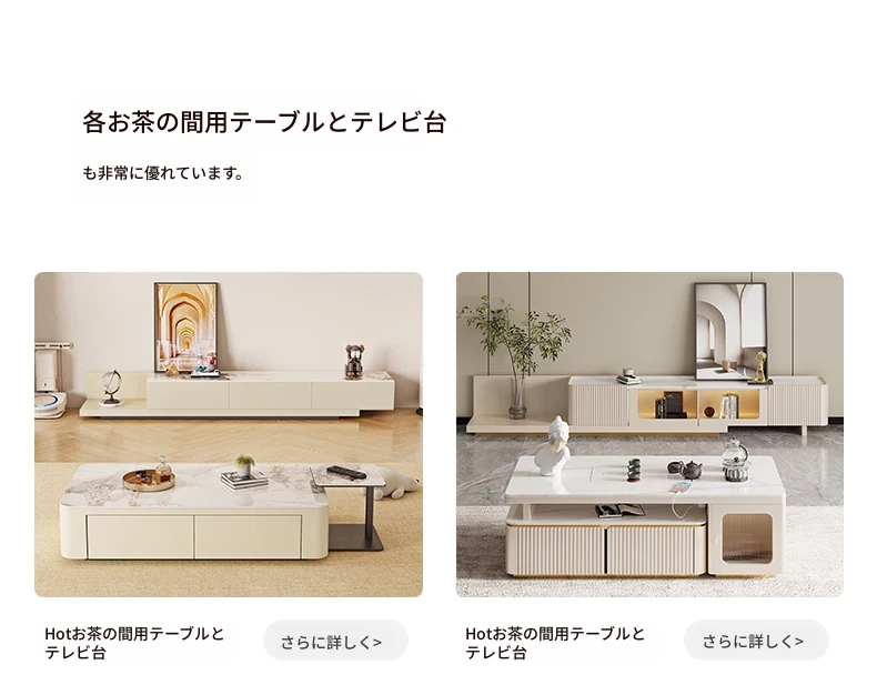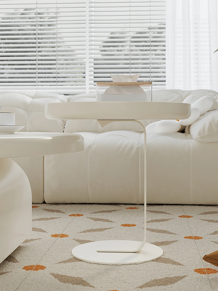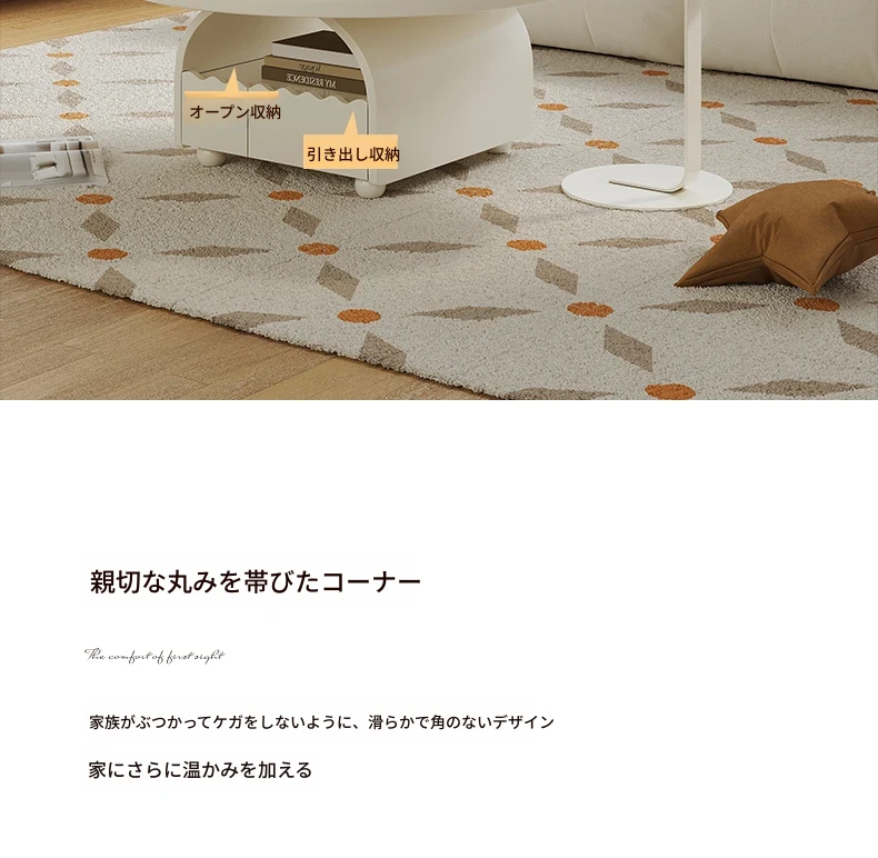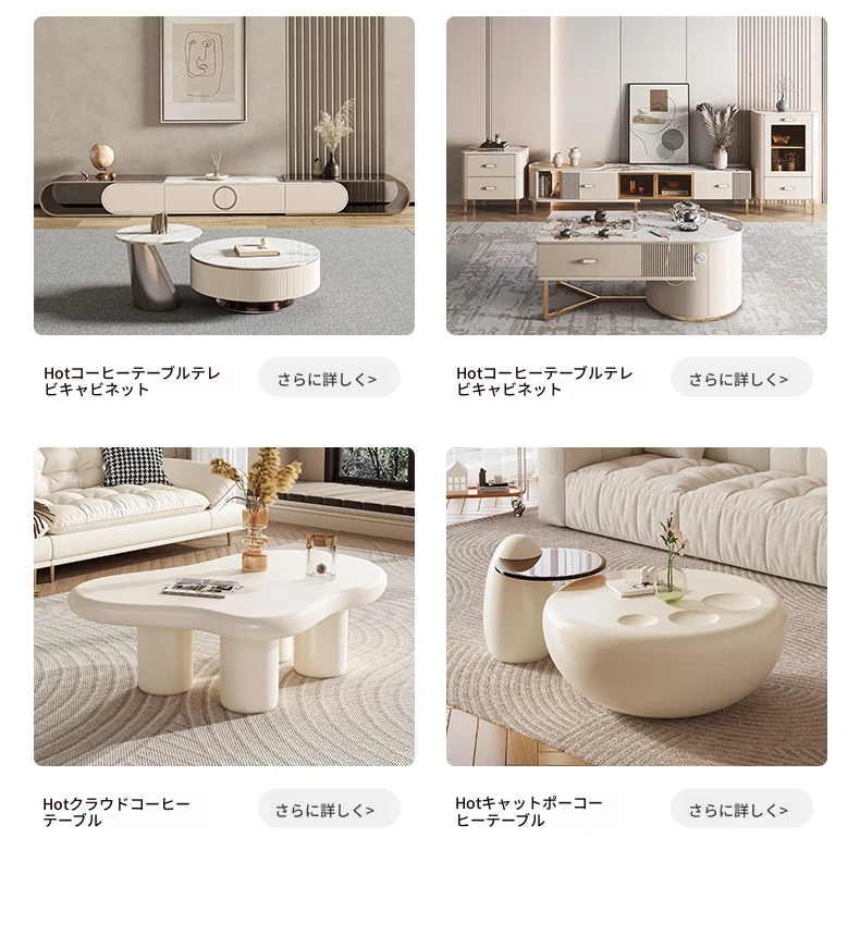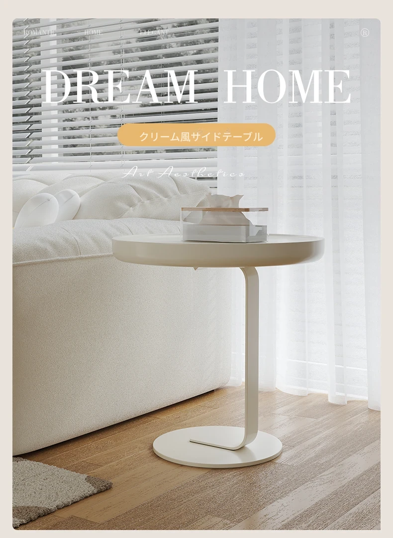 2024年新款!モダンでシンプルなデザイン・高級感のある創意ラウンドリビングルームテーブルセット、小型住宅にも最適なクリーム風リビングテーブル