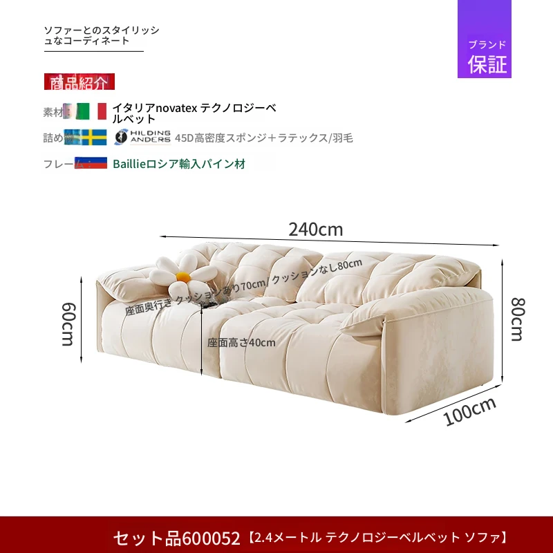 セット600052【2.4メートルテクノロジーファブリックソファ】