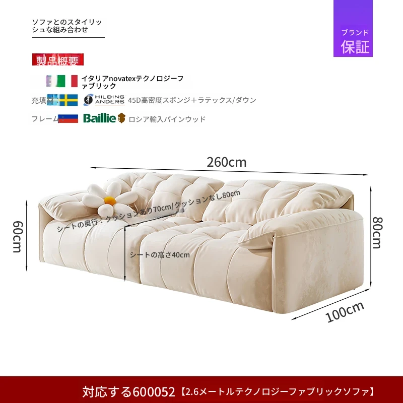 セット600052【2.6メートルテクノロジーファブリックソファ】