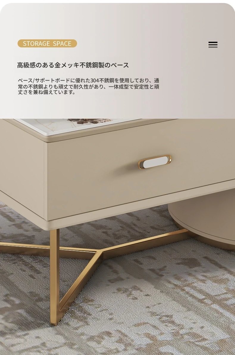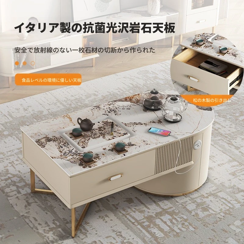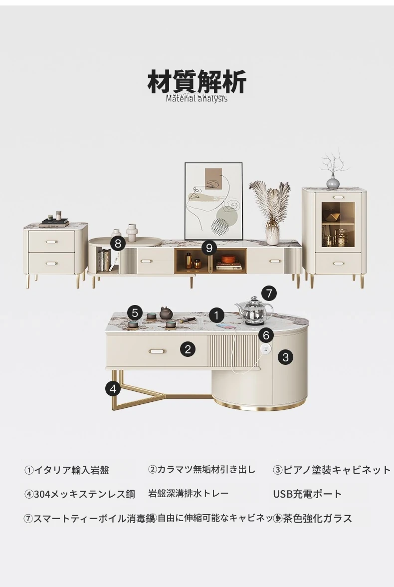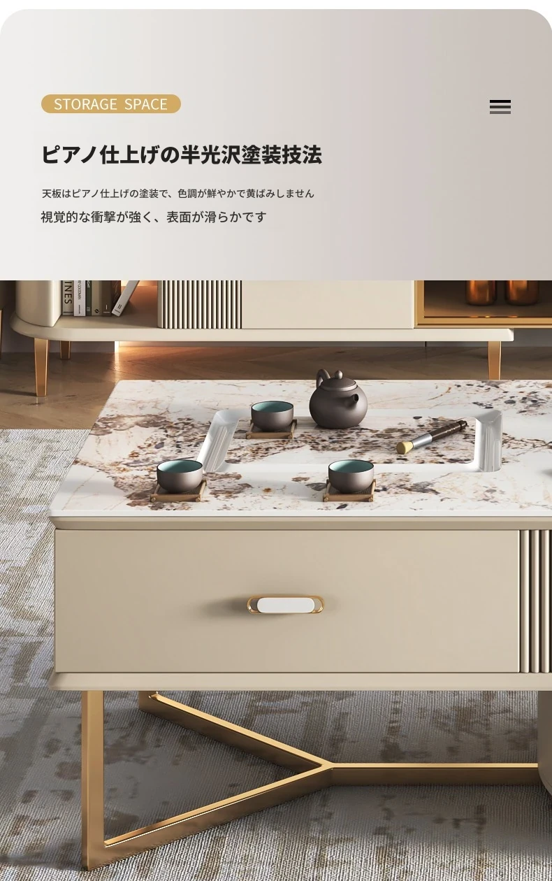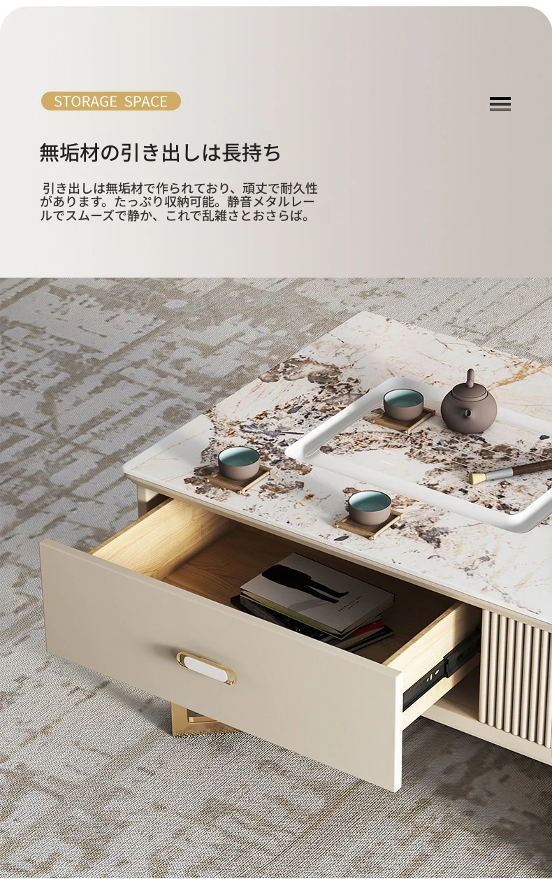 【魅力北欧风】环保仕上げのリビングルームセット - 収納付きコーヒーテーブル、TVボード、引き出しキャビネット!小スペースにもぴったりの岩板デザインで、美しい生活を演出。