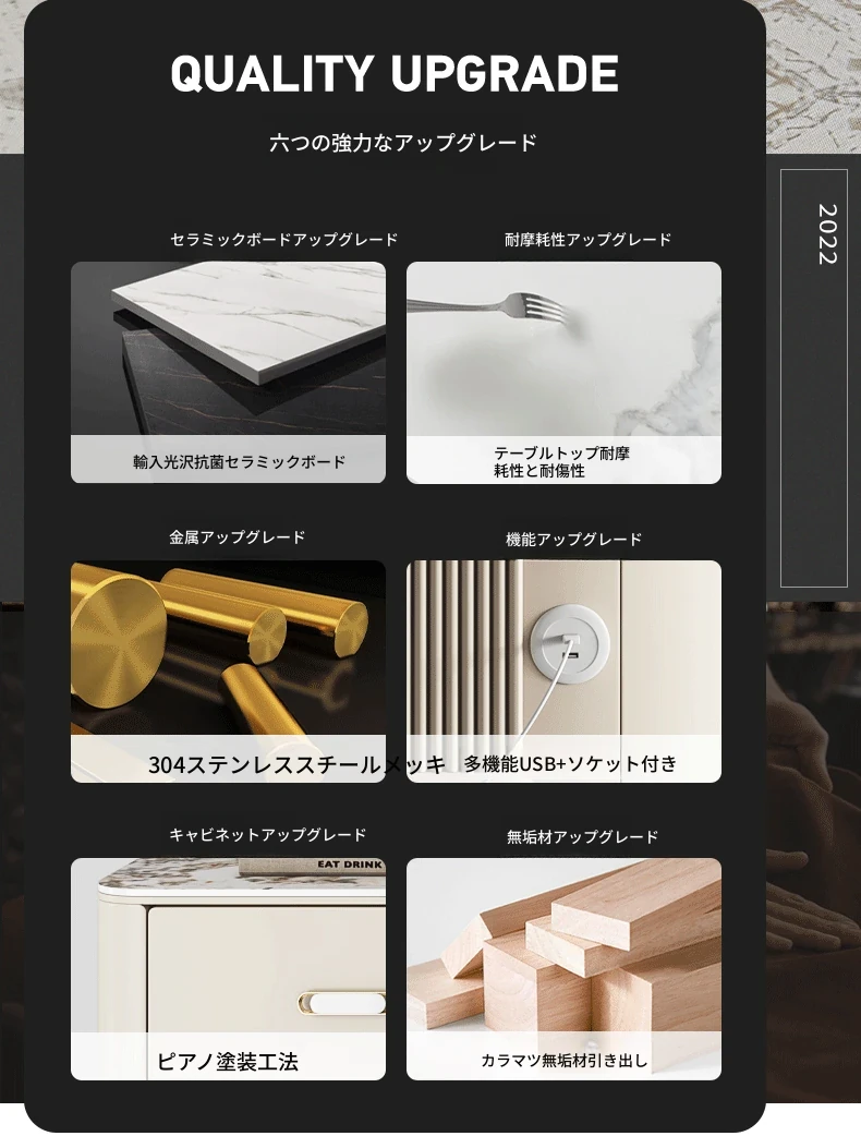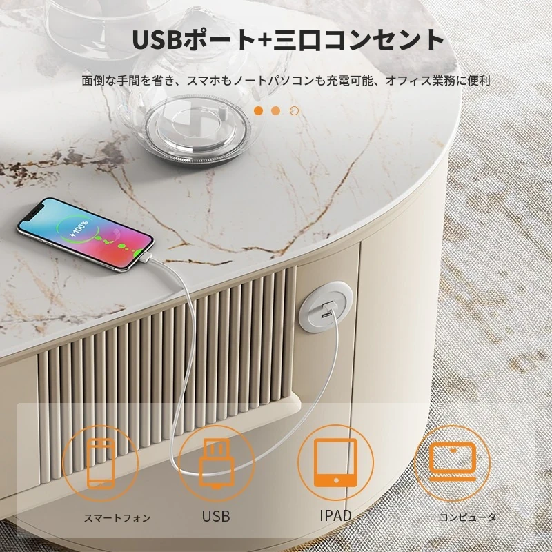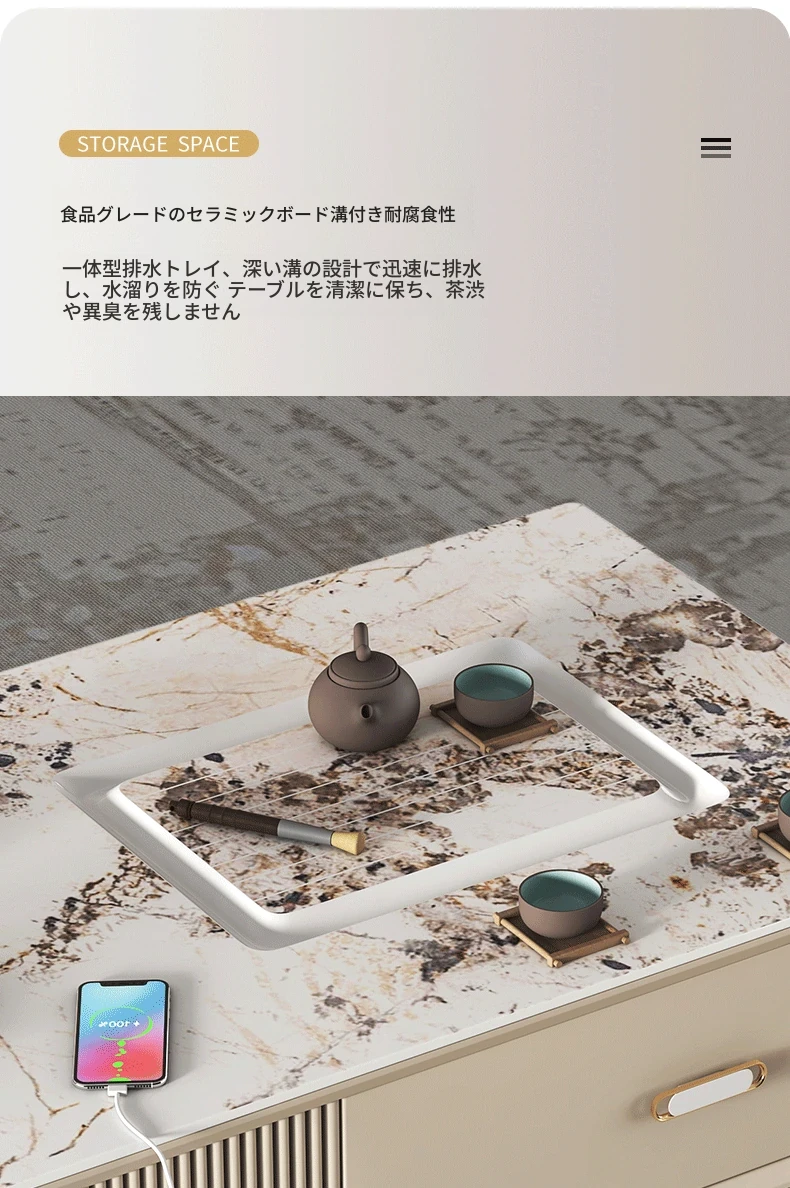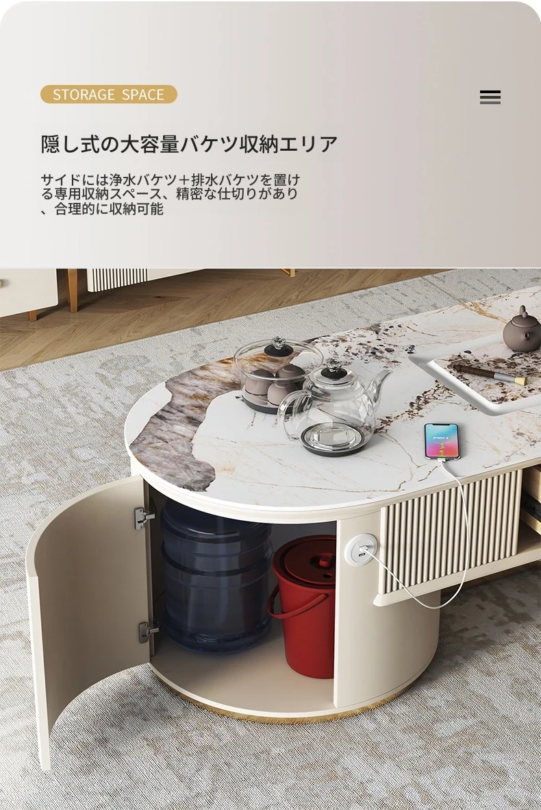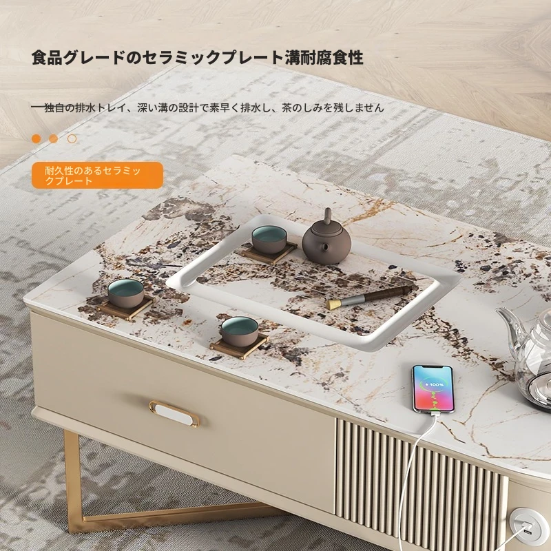 【魅力北欧风】环保仕上げのリビングルームセット - 収納付きコーヒーテーブル、TVボード、引き出しキャビネット!小スペースにもぴったりの岩板デザインで、美しい生活を演出。
